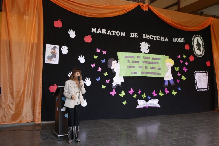Por último, María de los Ángeles Díaz de Gallardo, bibliotecaria de la institución, comentó: “Es un día hermoso, muy importante porque estamos celebrando la Maratón Nacional de Lectura, algo que hemos estado preparando y esperando con todos los chicos y las docentes de la institución. Estamos haciéndole honor a los grandes cuentos y este año es todo lo antológico, los malvados, las brujas, todos aquellos que siempre tuvieron el papel secundario y decíamos, ´Qué malo´, hoy, son protagonistas. Los chicos se han preparado mucho, tenemos grandes colecciones de libros tradicionales, estoy muy feliz con todo lo que está llegando del gobierno, y está hermoso para mí como bibliotecaria que siempre estén llegando materiales nuevos”.
