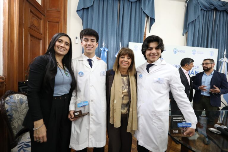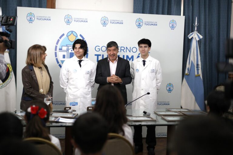 Durante el acto también fueron reconocidos Lautaro Miguel y Francisco Yanguez, alumnos de la Escuela Normal Superior Teniente Julio Argentino Roca, de Monteros, ganadores del concurso “Enseñame Tucumán”. Como premio, su curso viajará a Carlos Paz.