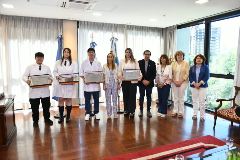 Las distinciones estuvieron encabezadas por la ministra de Educación, Susana Montaldo; el presidente subrogante de la Legislatura, Sergio Mansilla; la secretaria de Educación, Gabriela Gallardo; la directora de Educación Superior, Silvina Fernández; y la referente provincial del programa de Feria de Ciencias, Norma Broggi.