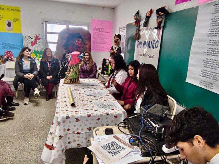 En la Escuela Secundaria El Salvador, la jornada incluyó un espacio de conversación con los estudiantes, quienes compartieron cómo fortalecen sus prácticas de lectura y escritura a partir del trabajo cotidiano en el aula. Por su parte, en la Escuela Media de Mariño, los estudiantes presentaron producciones elaboradas en el marco de las secuencias del proyecto, compartieron coplas, relataron historias de duendes y mostraron cómo la radio escolar se convierte en una herramienta para expresarse y desarrollar la escritura.