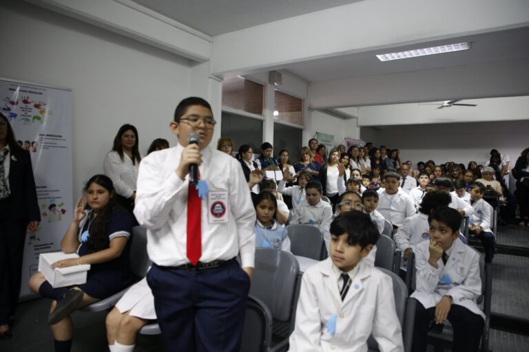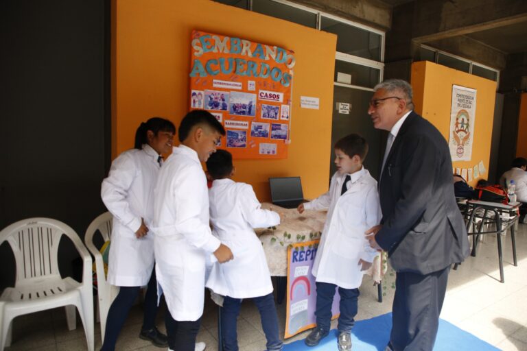 Luego agregó: “También, quiero contar que los chicos están con la experiencia del Parlamento Estudiantil de niños mediadores, y ahí los coordinadores de la mesa son niños y supervisores, hacen preguntas referidas a las experiencias y los niños dan a conocer qué sienten, qué piensan y qué mensaje pueden llevar a la familia en relación con este aprendizaje”.