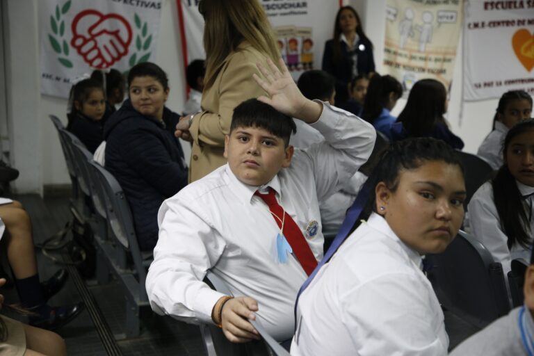 Bautista Ale Malangone, alumno, expresó: “Soy de la Escuela 9 de Julio. Este encuentro fue muy lindo y antes fuimos en agosto a la escuela María Auxiliadora. Esto sirve para resolver conflictos, para que los compañeros no se insulten y peleen. Esto es muy lindo, los chicos vienen a proponer soluciones para que a provincia sea mucho mejor”.