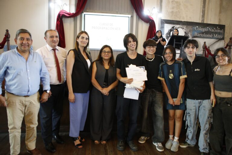 Además, Casares, agregó: “Se entregó un reconocimiento a todos los estudiantes de las escuelas mediadas por tecnología que participaron en el curso de programación web en convenio con UNICEF. Así que superfelices de cerrar un año, un ciclo lectivo de mucho esfuerzo, de muchas acciones que siempre buscan que nuestros estudiantes eh sean felices y que logren, por supuesto, los objetivos centrales de la educación secundaria, que justamente es poder continuar sus estudios, poder trabajar y sobre todo ser buenos ciudadanos”.
