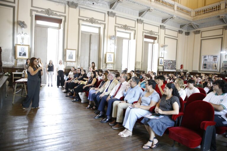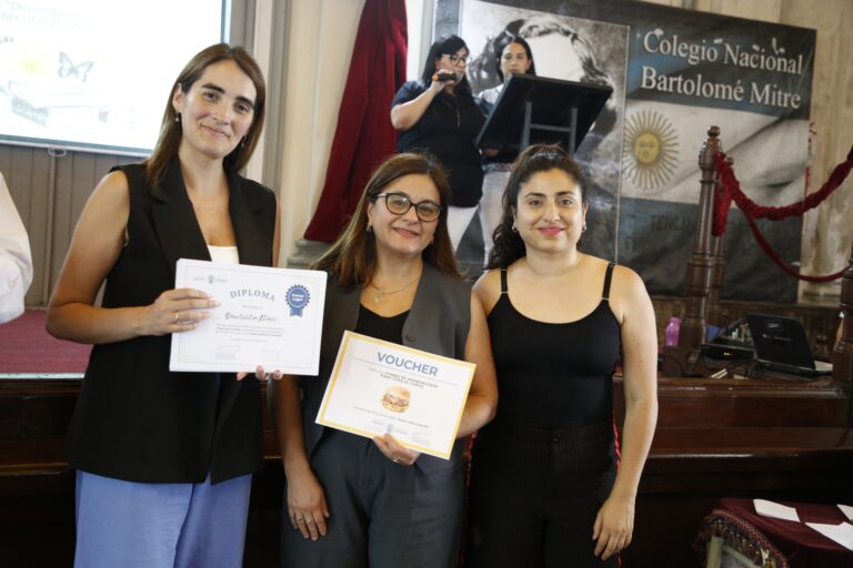 El evento contó con la participación de la directora del Nivel Secundario, Rosa Casares, y la subdirectora de Educación Pública de Gestión Privada, Guadalupe Corral, junto a supervisores de Educación Secundaria, miembros del equipo técnico de la Dirección de Educación Secundaria, directores, docentes, estudiantes y familias de las instituciones premiadas.
