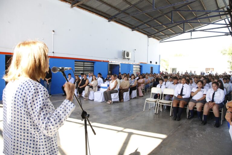 La ministra de Educación, Susana Montaldo participó de la entrega del Premio Industria Inspira 2025 y el acto de cierre de ciclo lectivo que se realizó en la Escuela Técnica Ingeniero Antonio M. Correa de la localidad de Delfín Gallo.