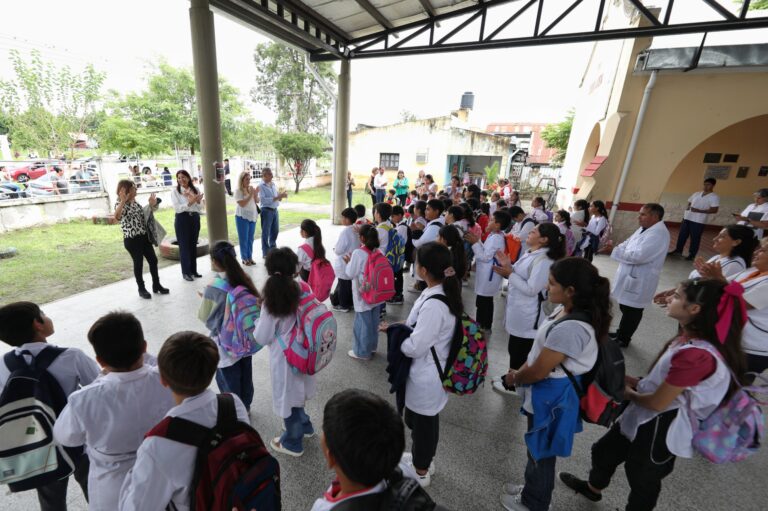 En el marco de las acciones de asistencia y contención impulsadas por el Gobierno de Tucumán frente a la emergencia climática, la ministra de Educación, Susana Montaldo, visitó la Escuela N° 54 Provincia de la Pampa de la localidad Taco Ralo, la cual funciona como comedor para familias damnificadas y albergó a más de 50 familias por las inundaciones en la zona. Además, recorrió la Escuela Primaria Cornelio Saavedra de Atahona, que cuenta con 6 divisiones, 80 alumnos y ofrece desayuno.