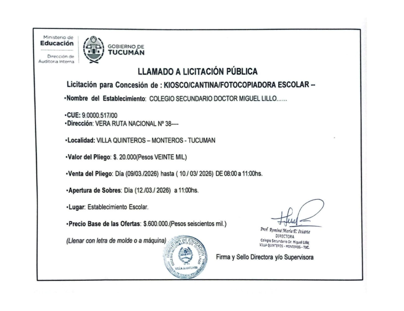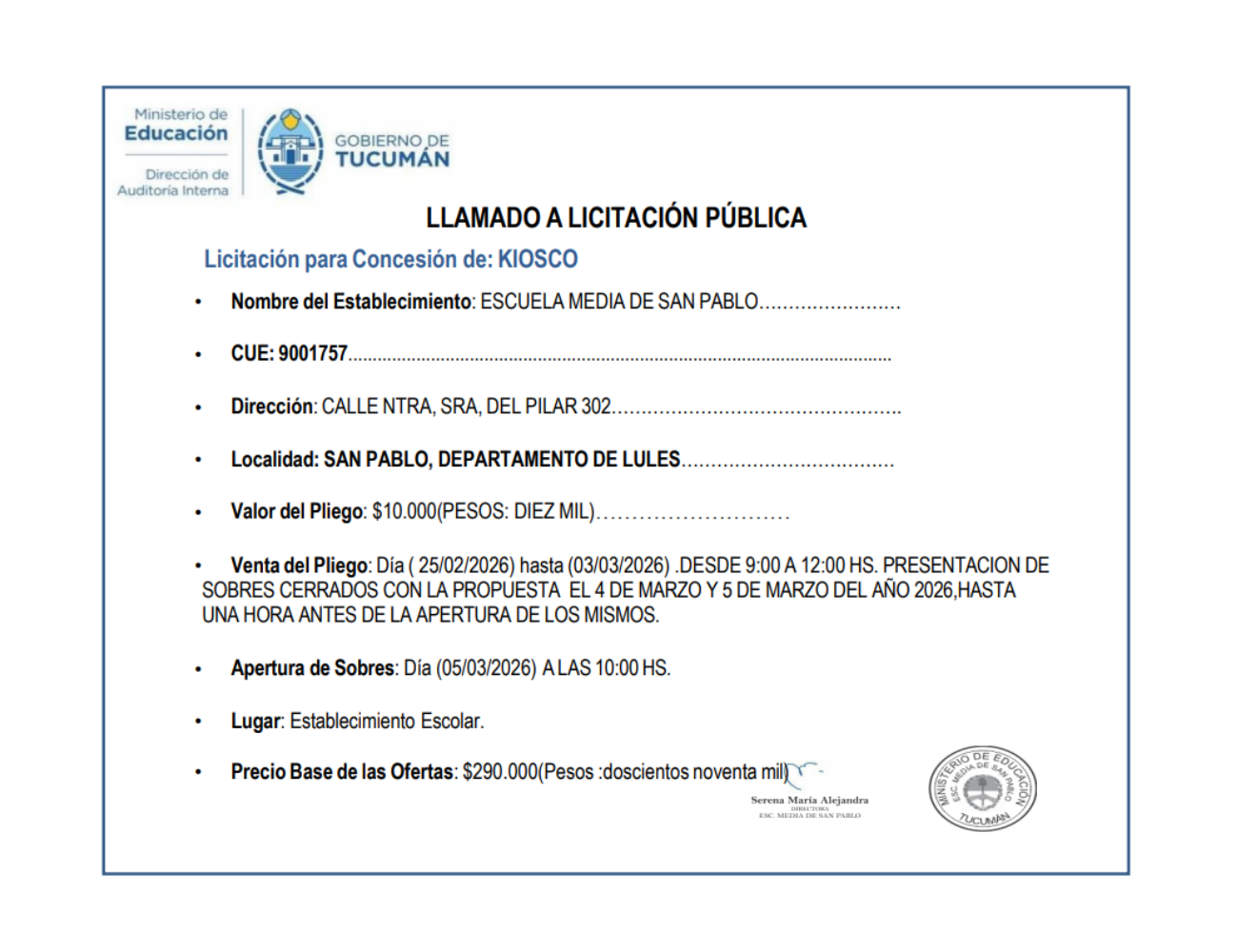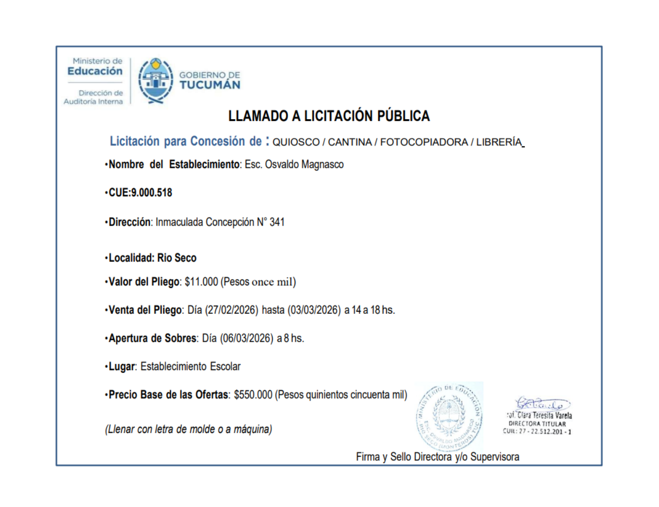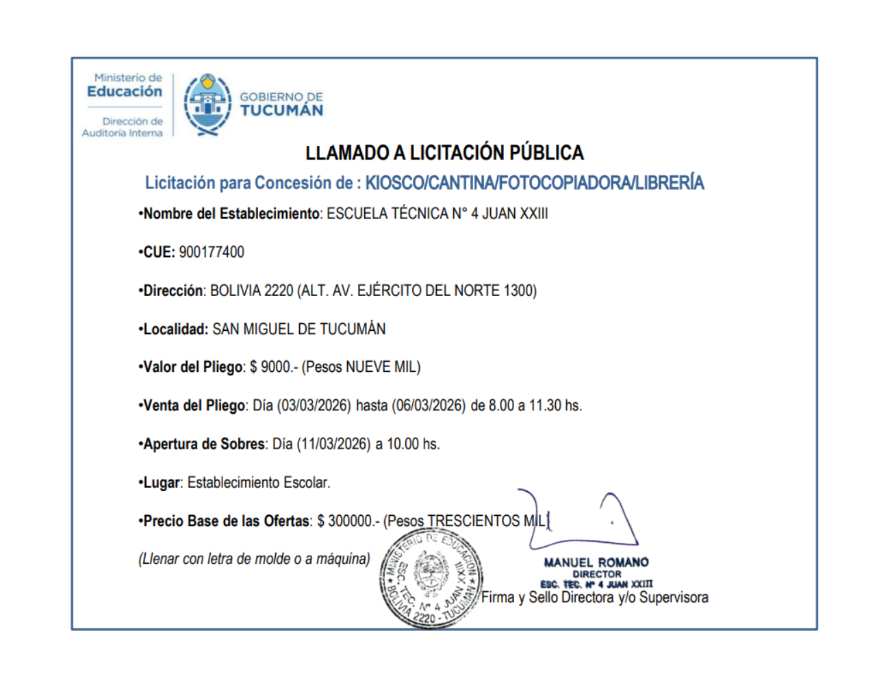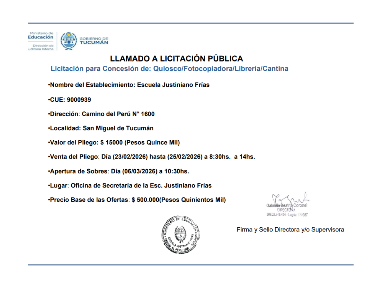 Concesiones Cantina / Quioscos Escolares