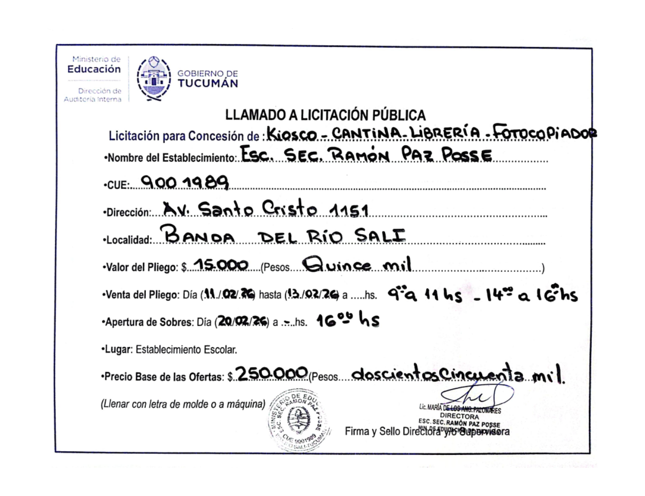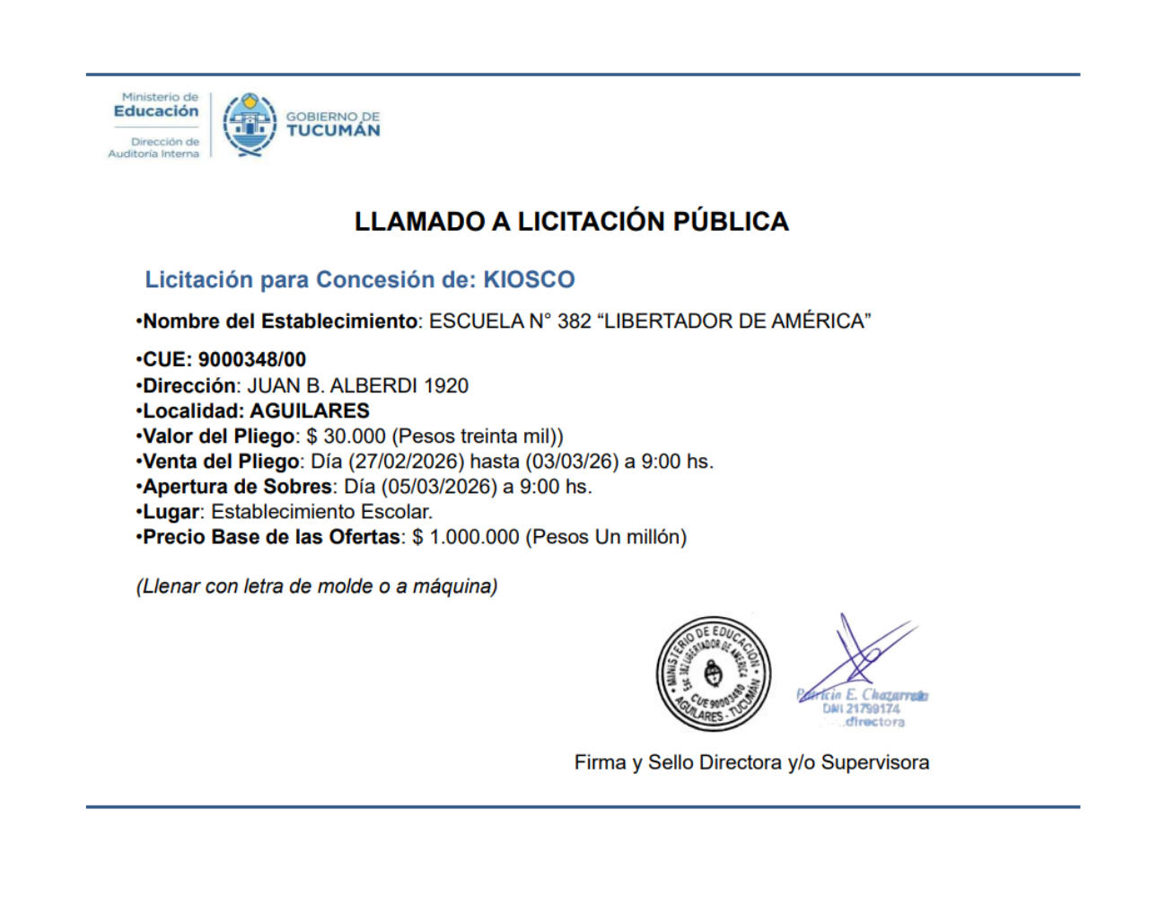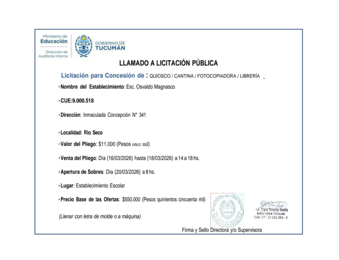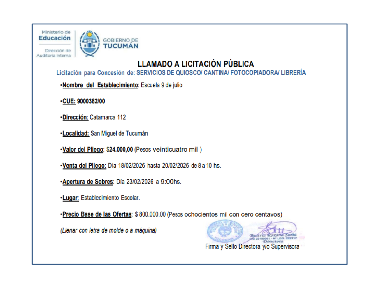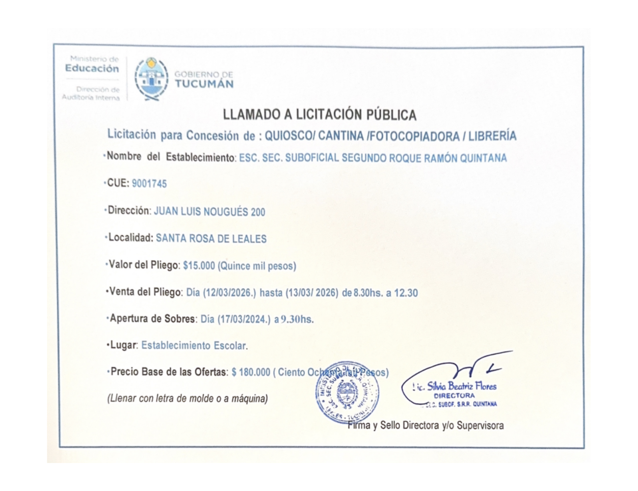 Concesiones Cantina / Quioscos Escolares