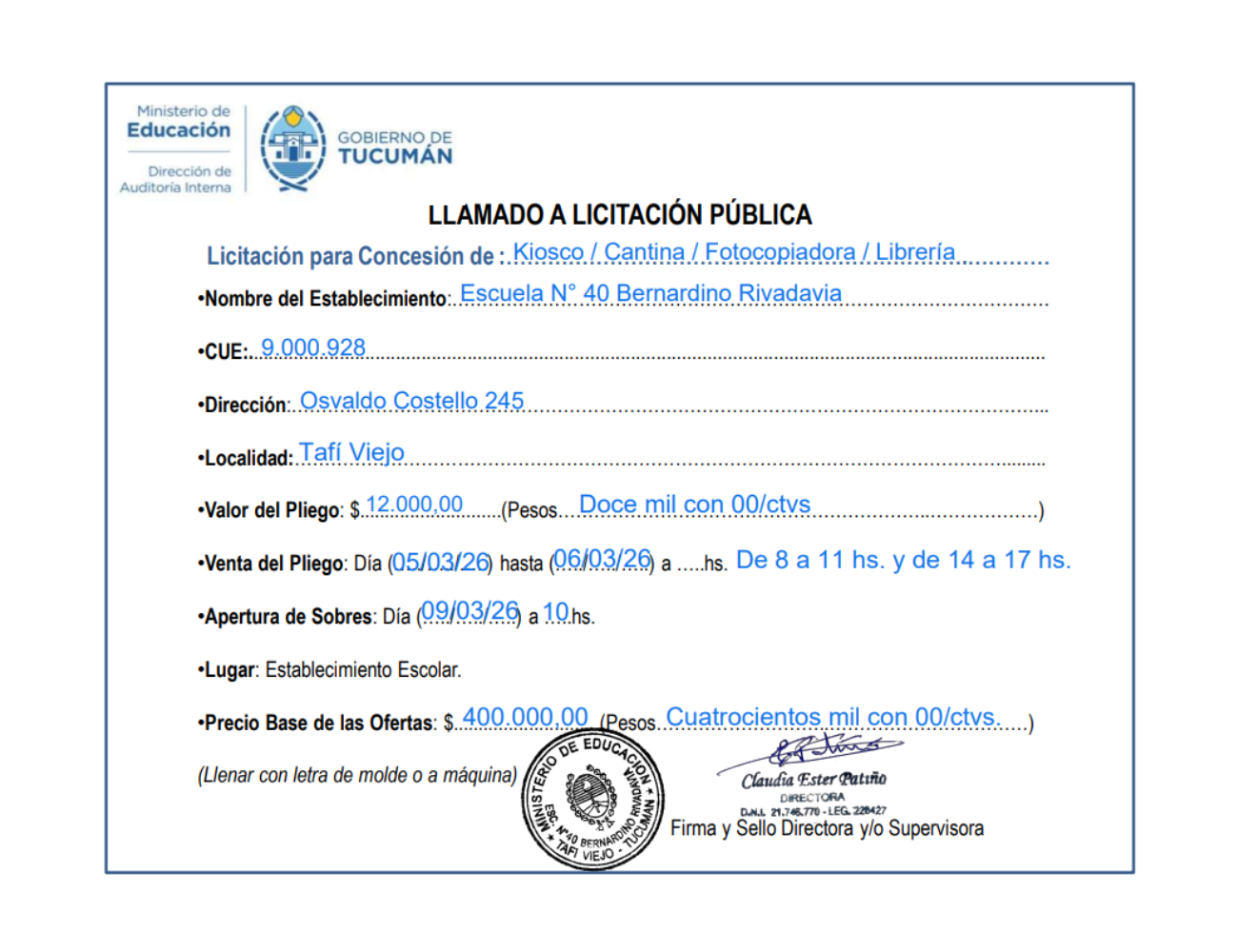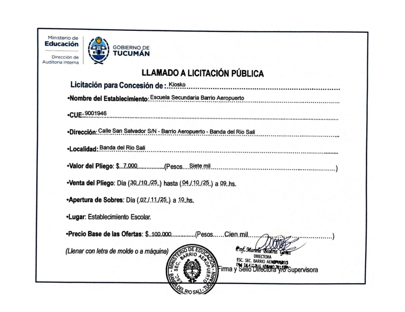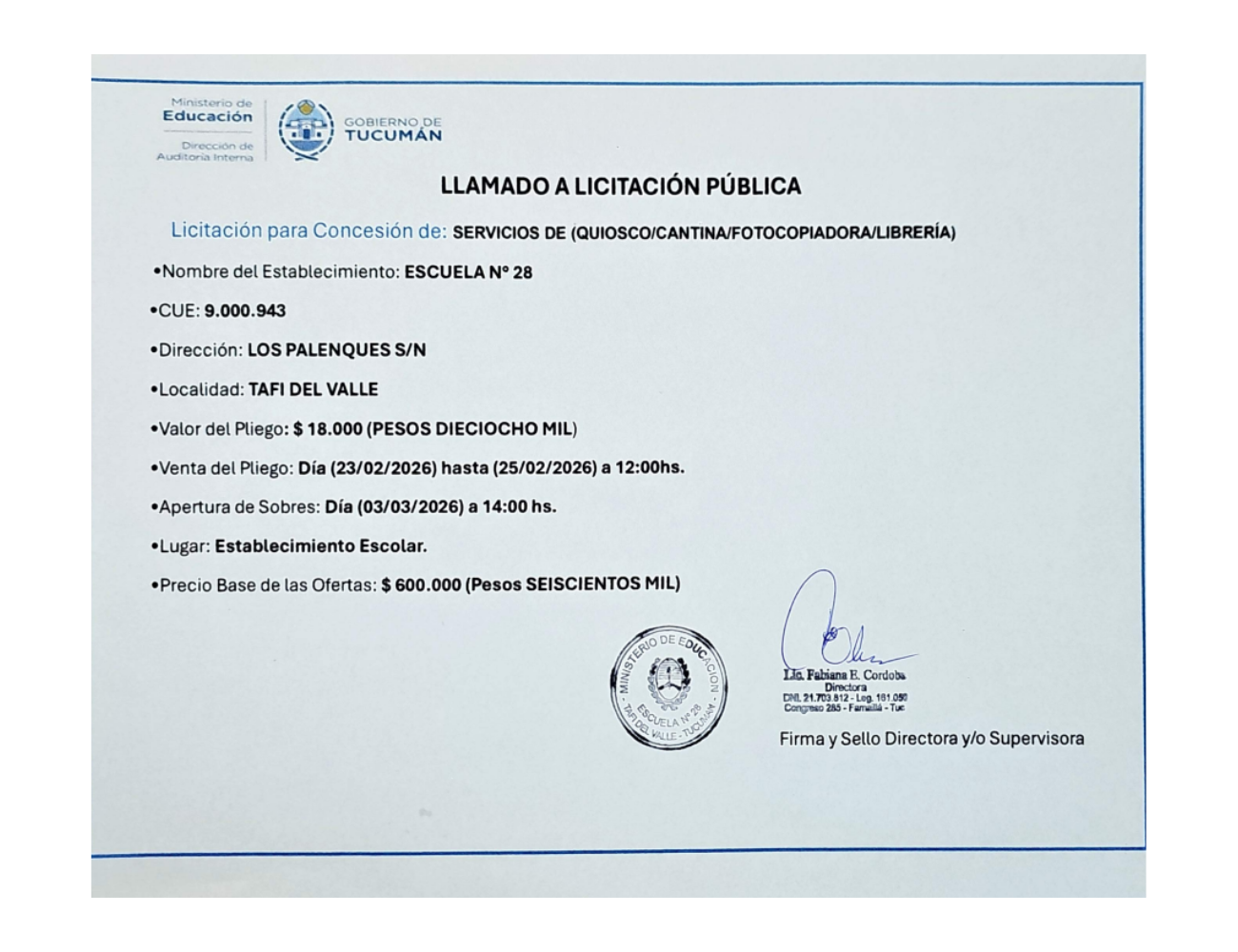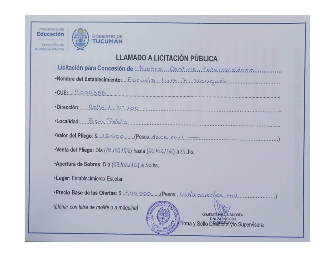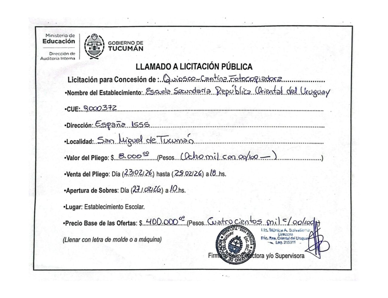 Concesiones Cantina / Quioscos Escolares
