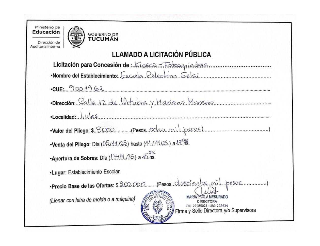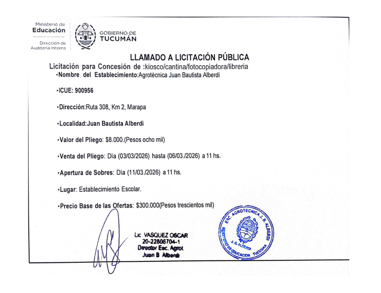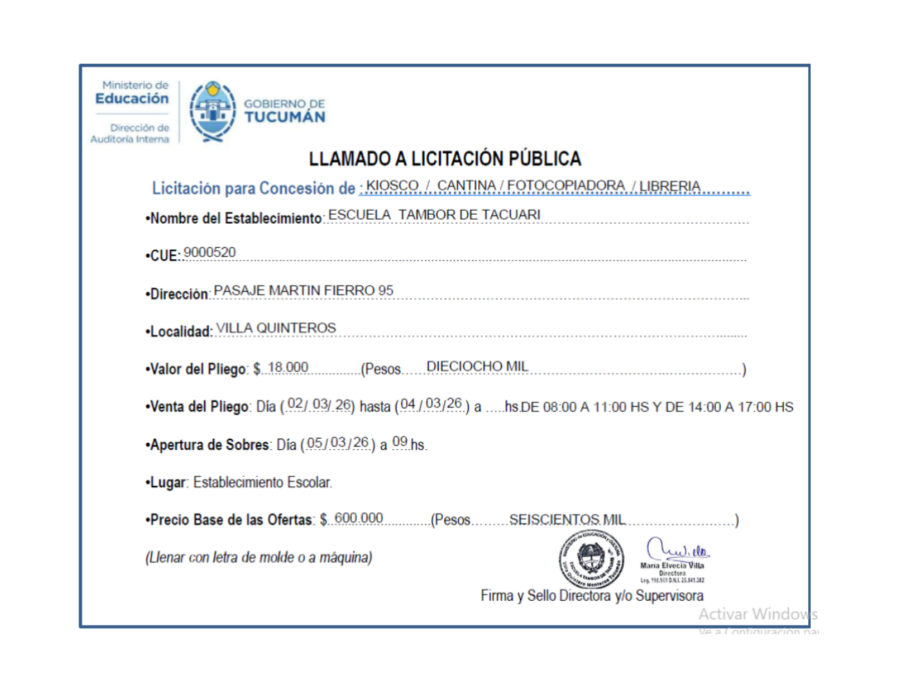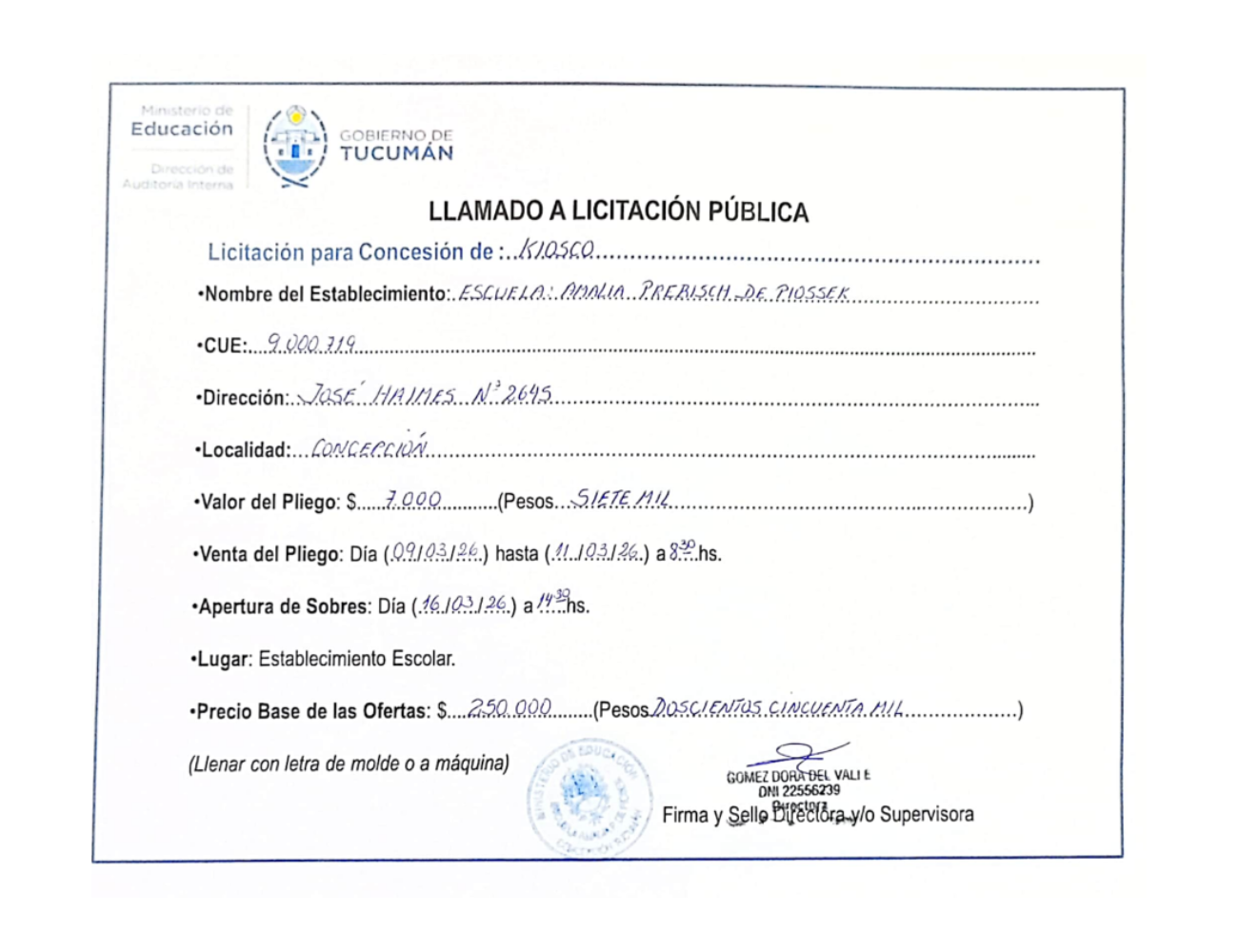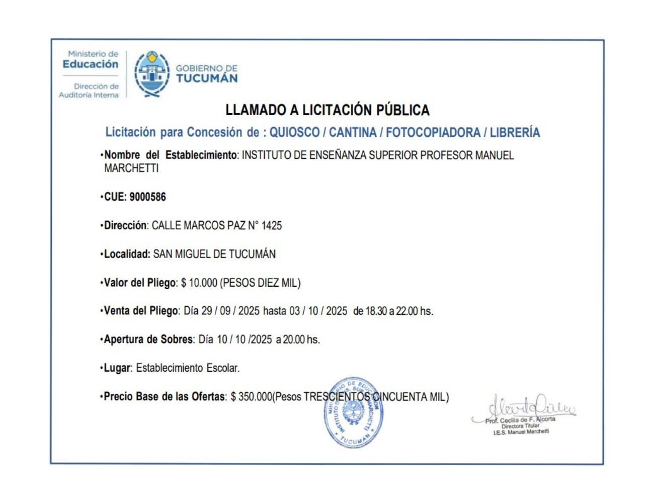 Concesiones Cantina / Quioscos Escolares