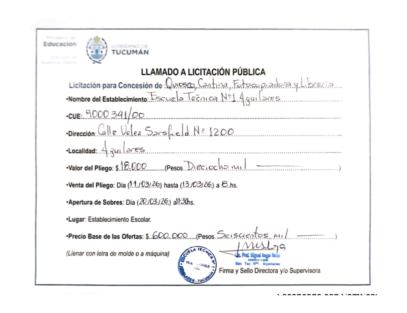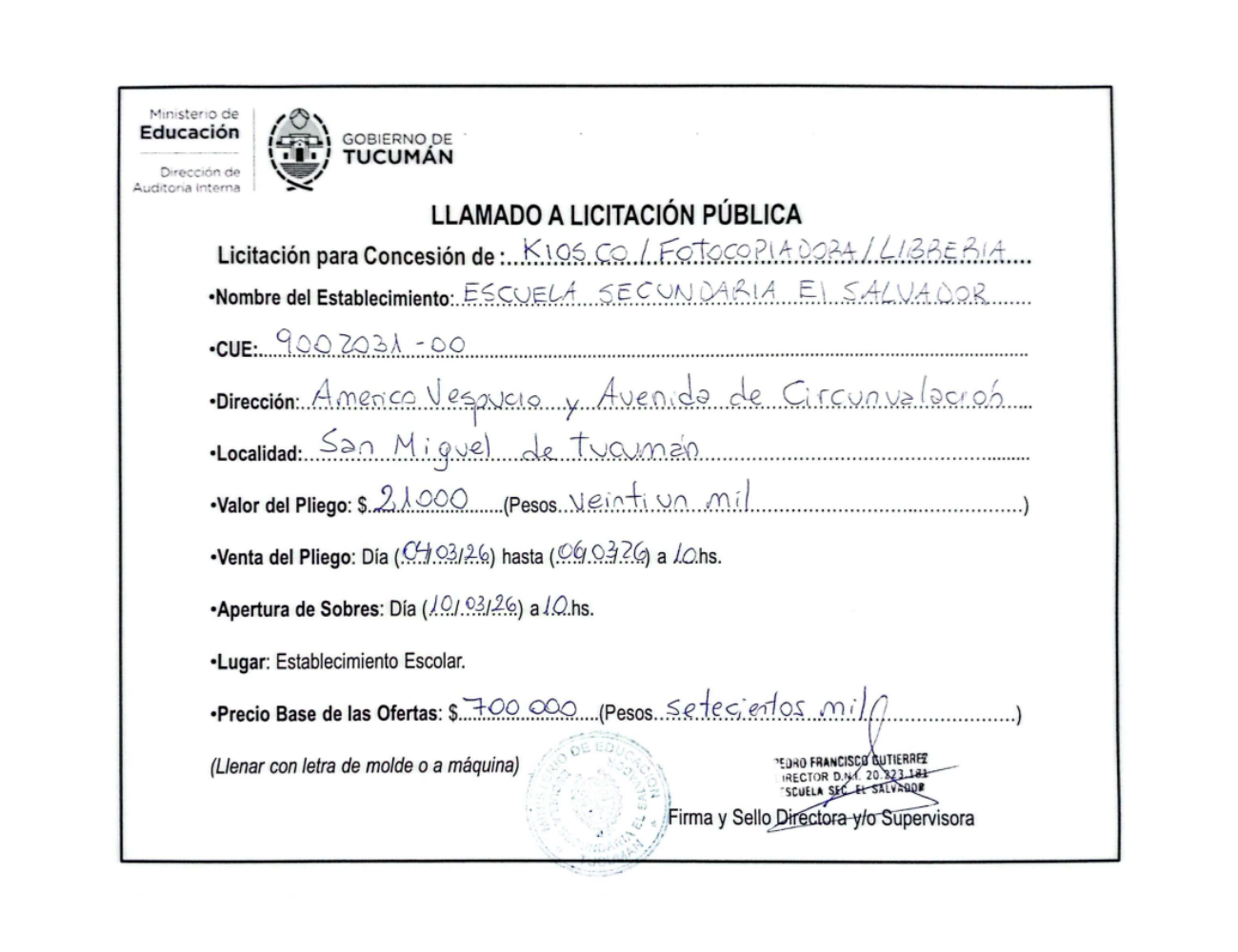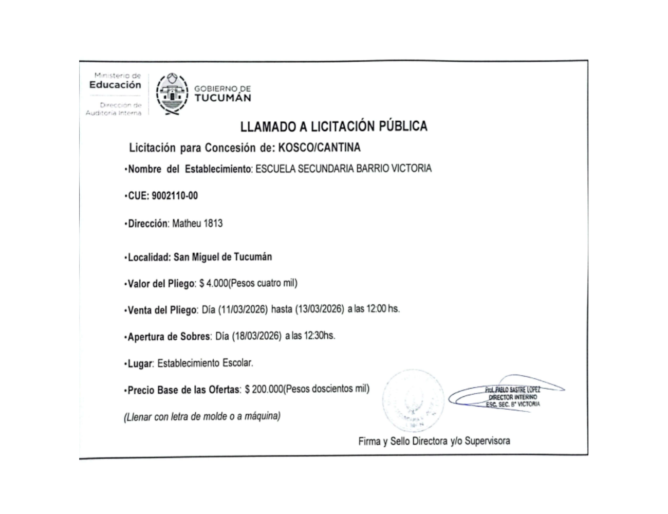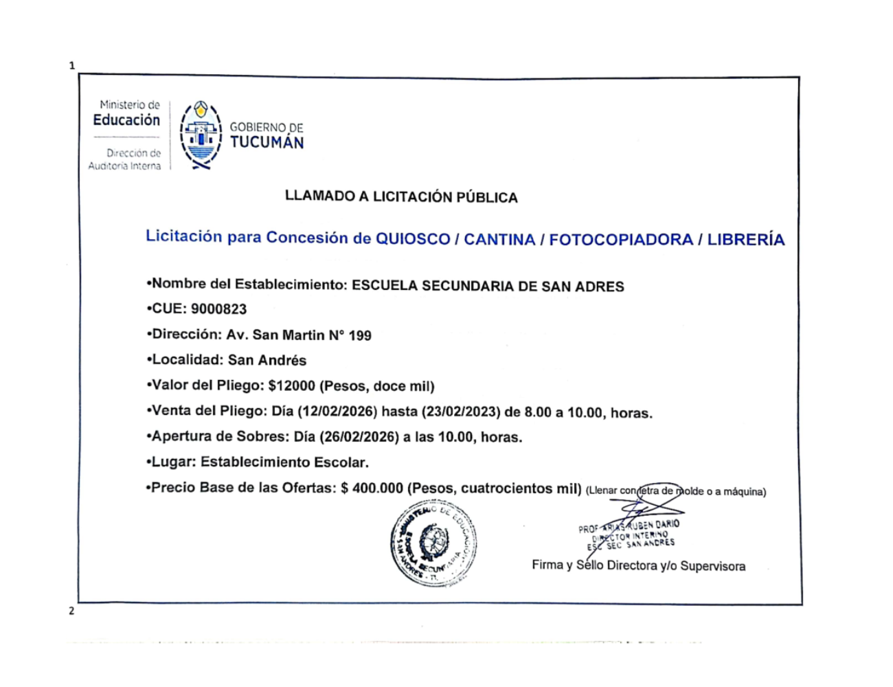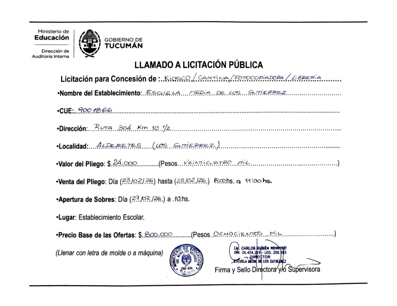 Concesiones Cantina / Quioscos Escolares
