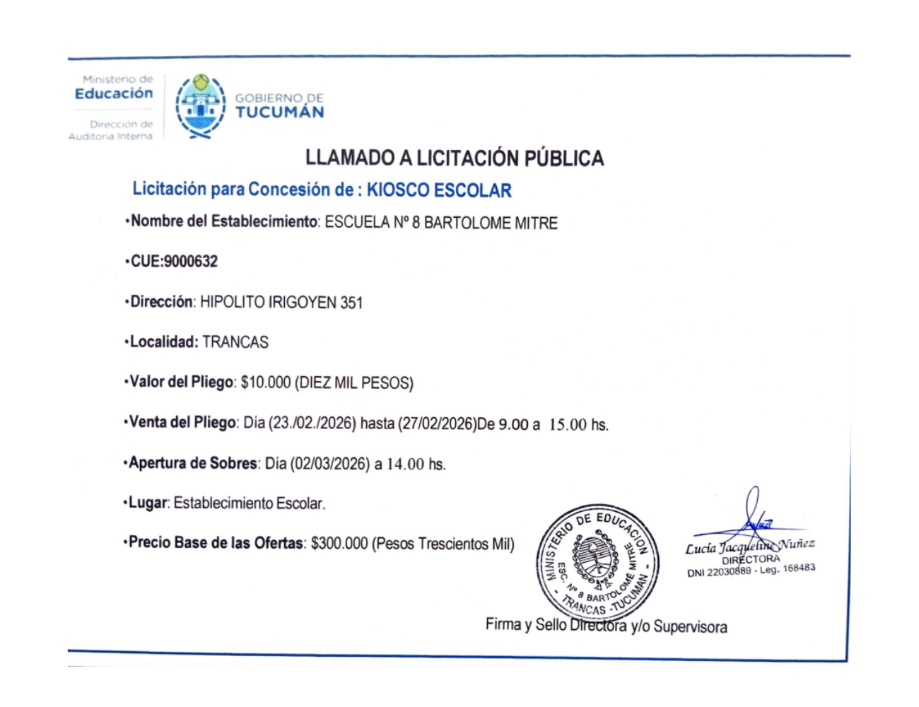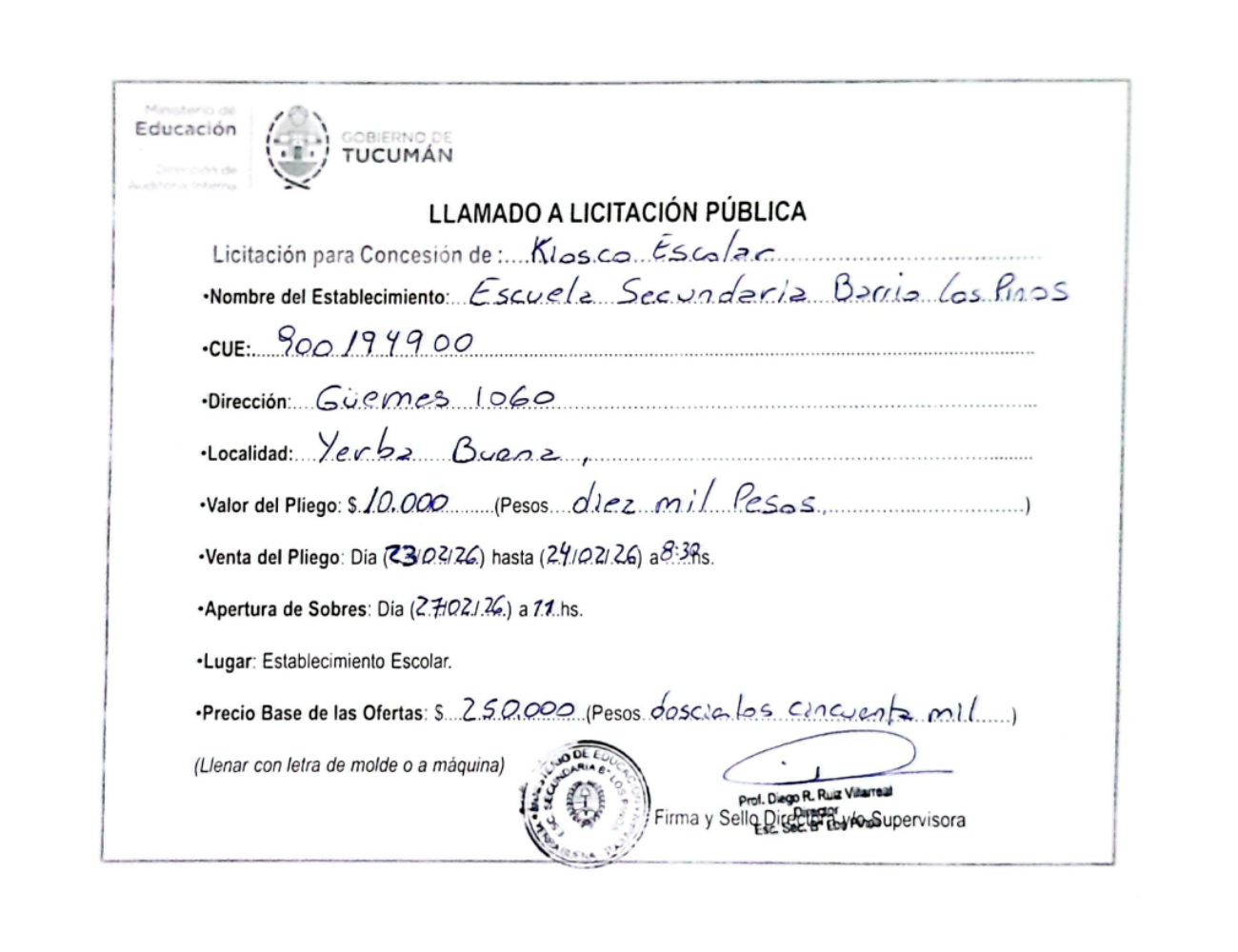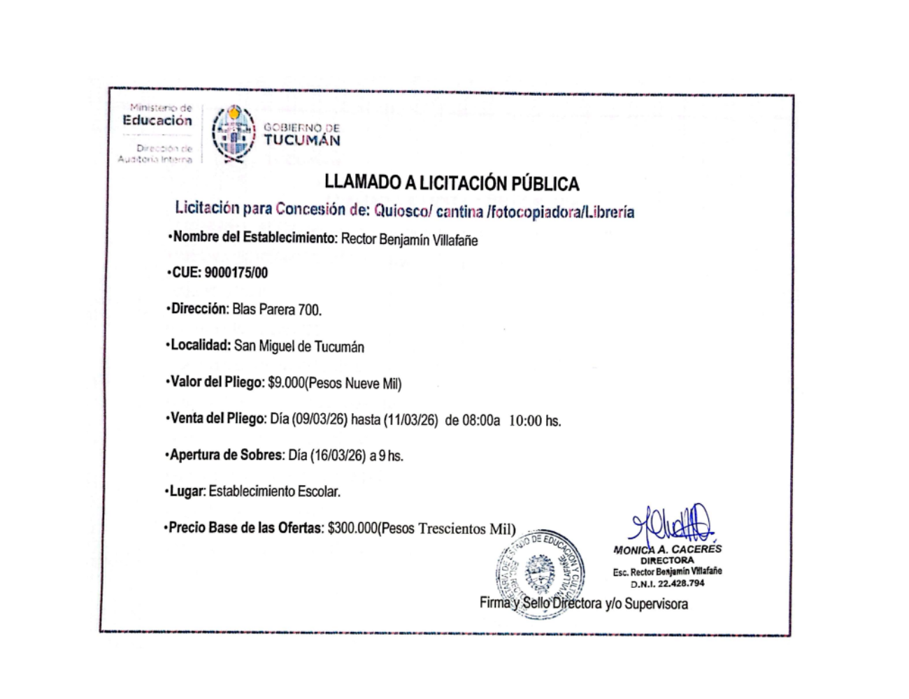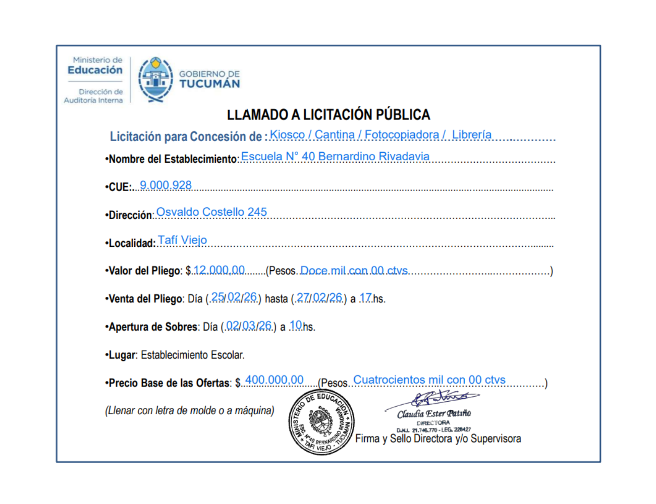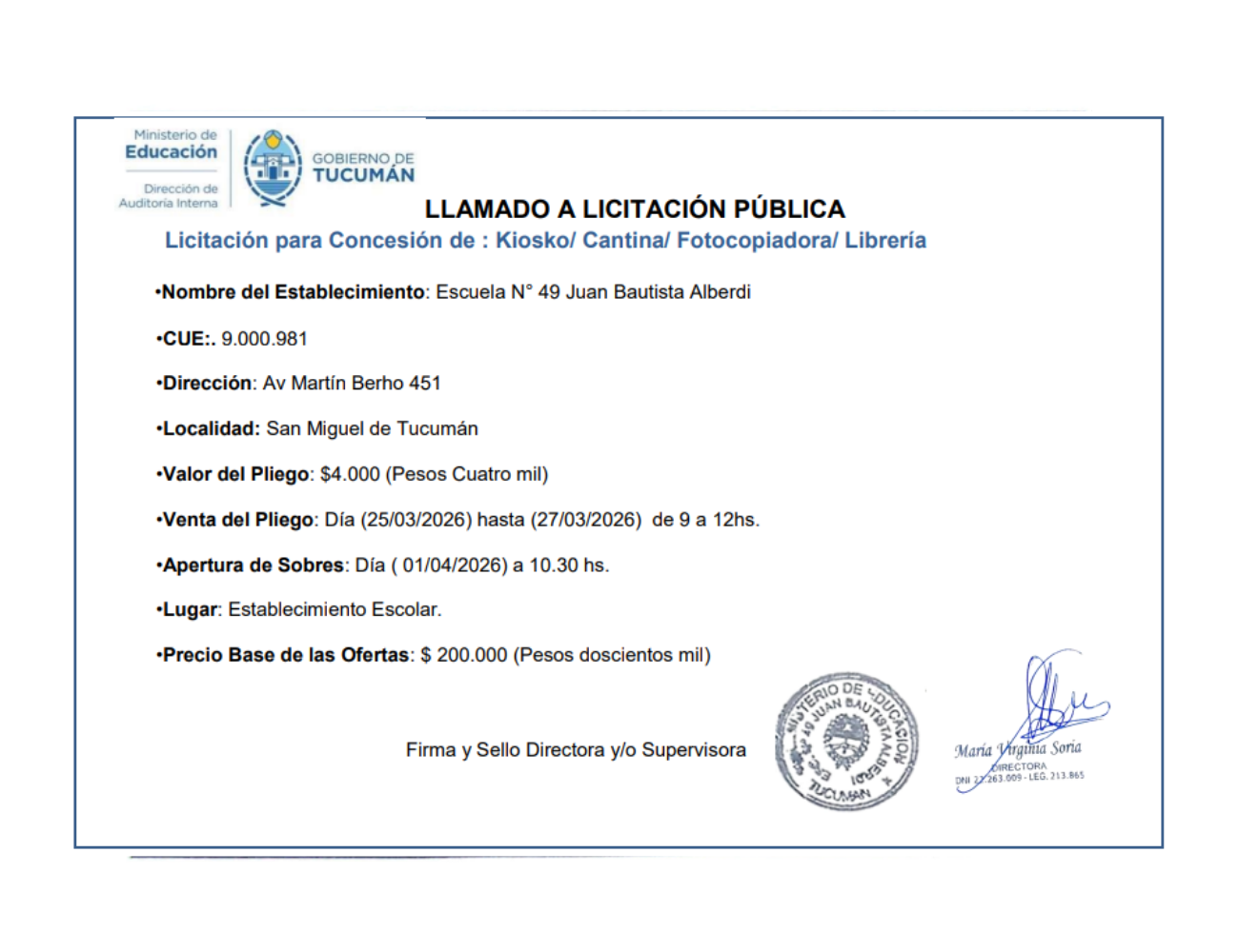 Concesiones Cantina / Quioscos Escolares