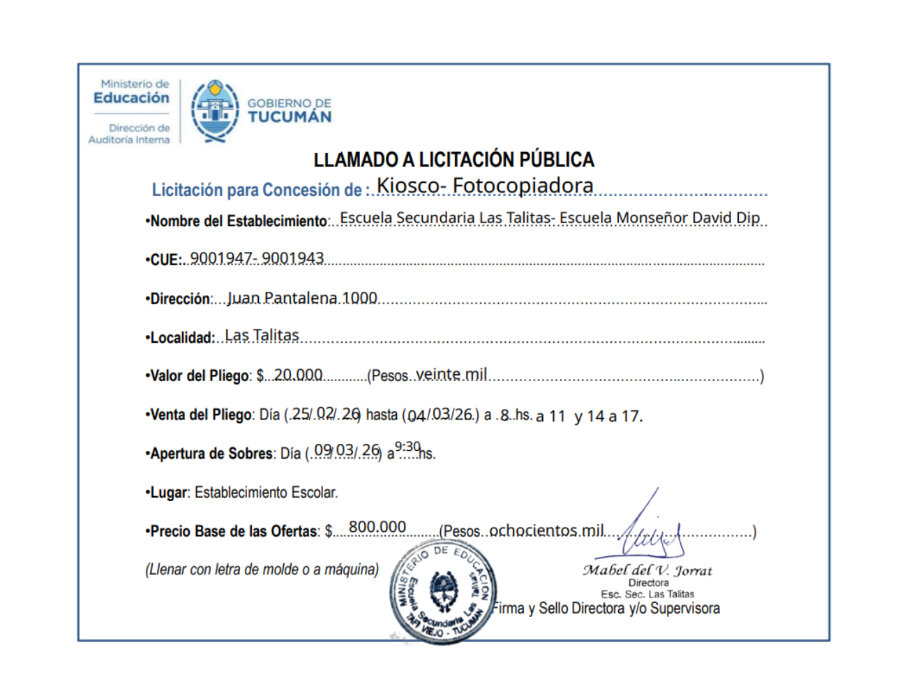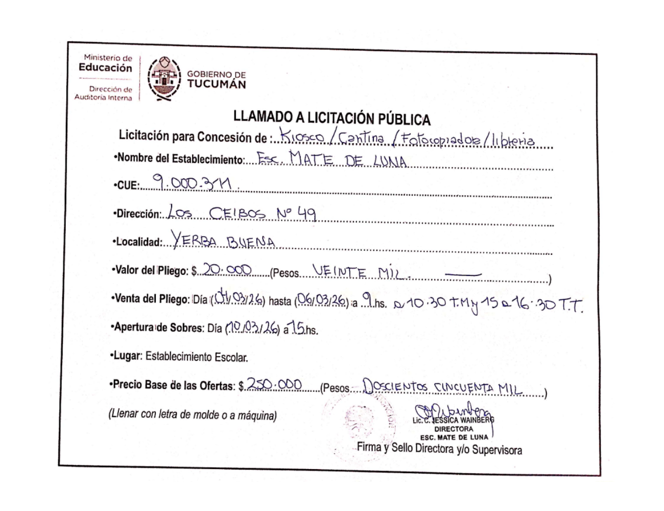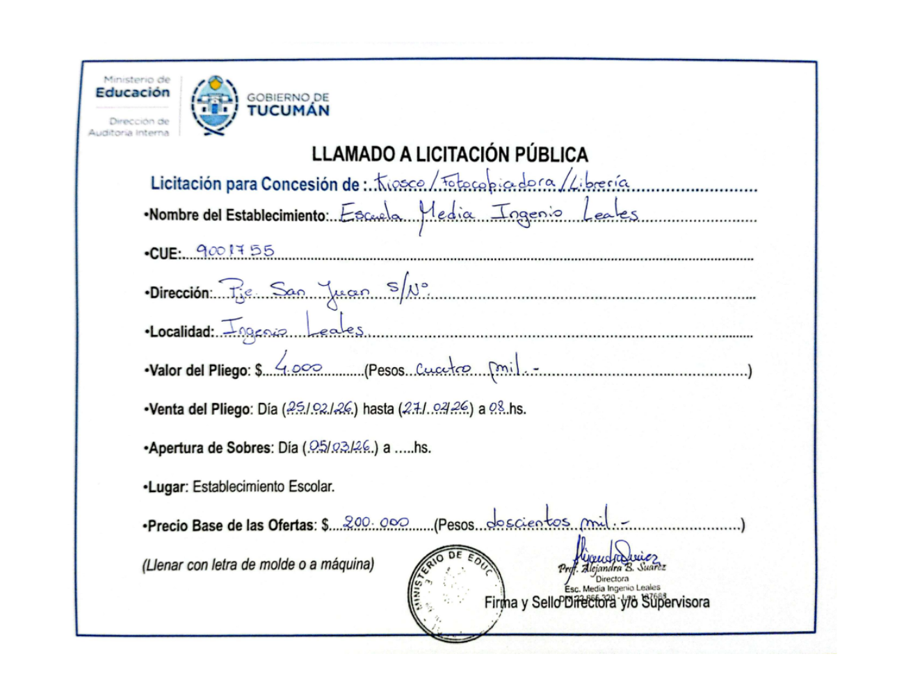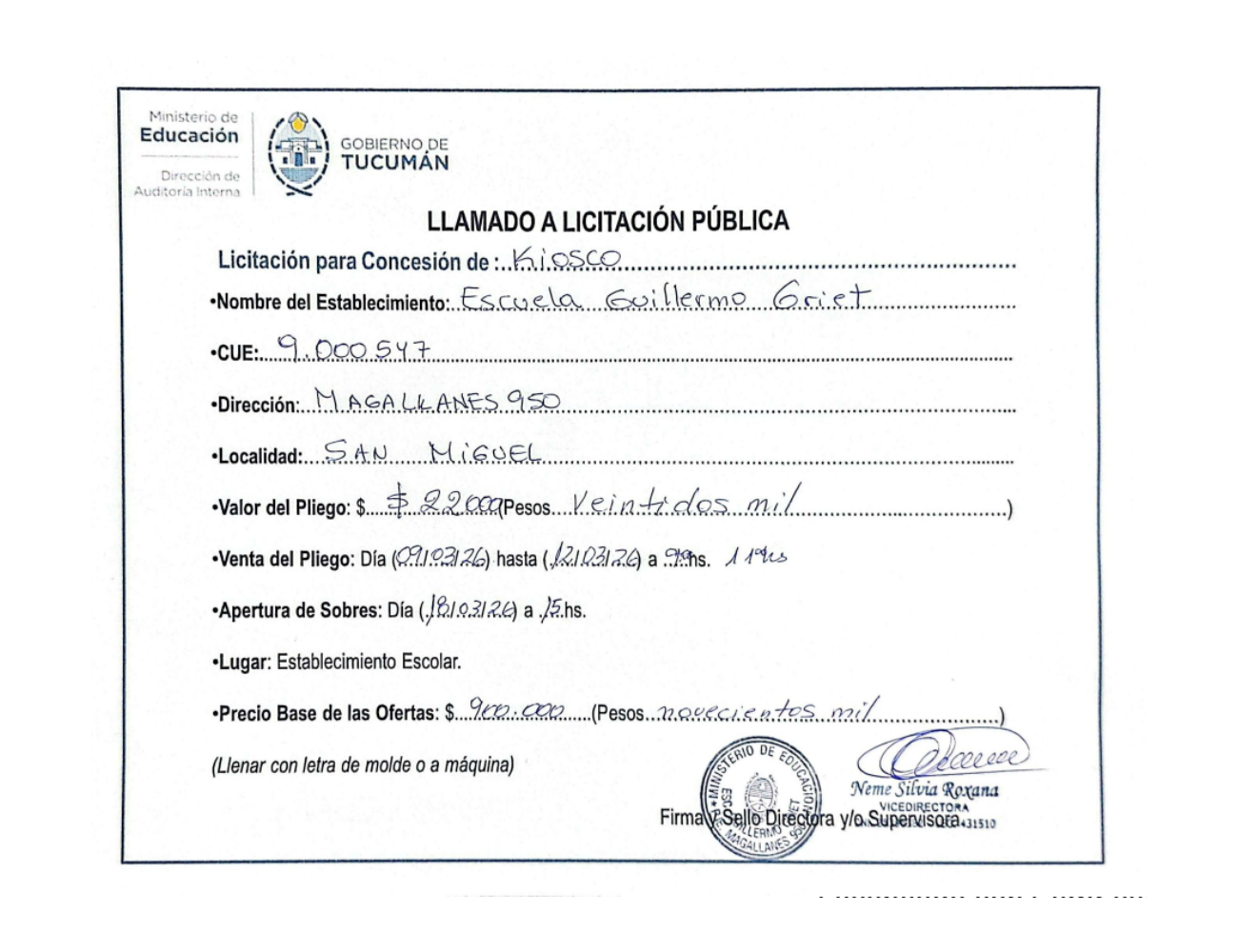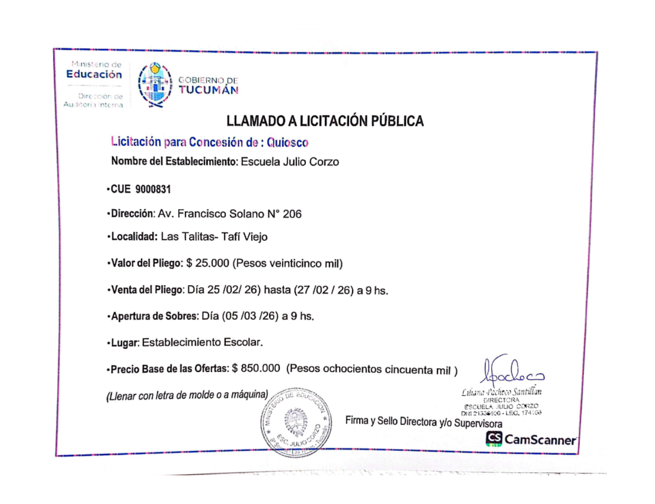 Concesiones Cantina / Quioscos Escolares