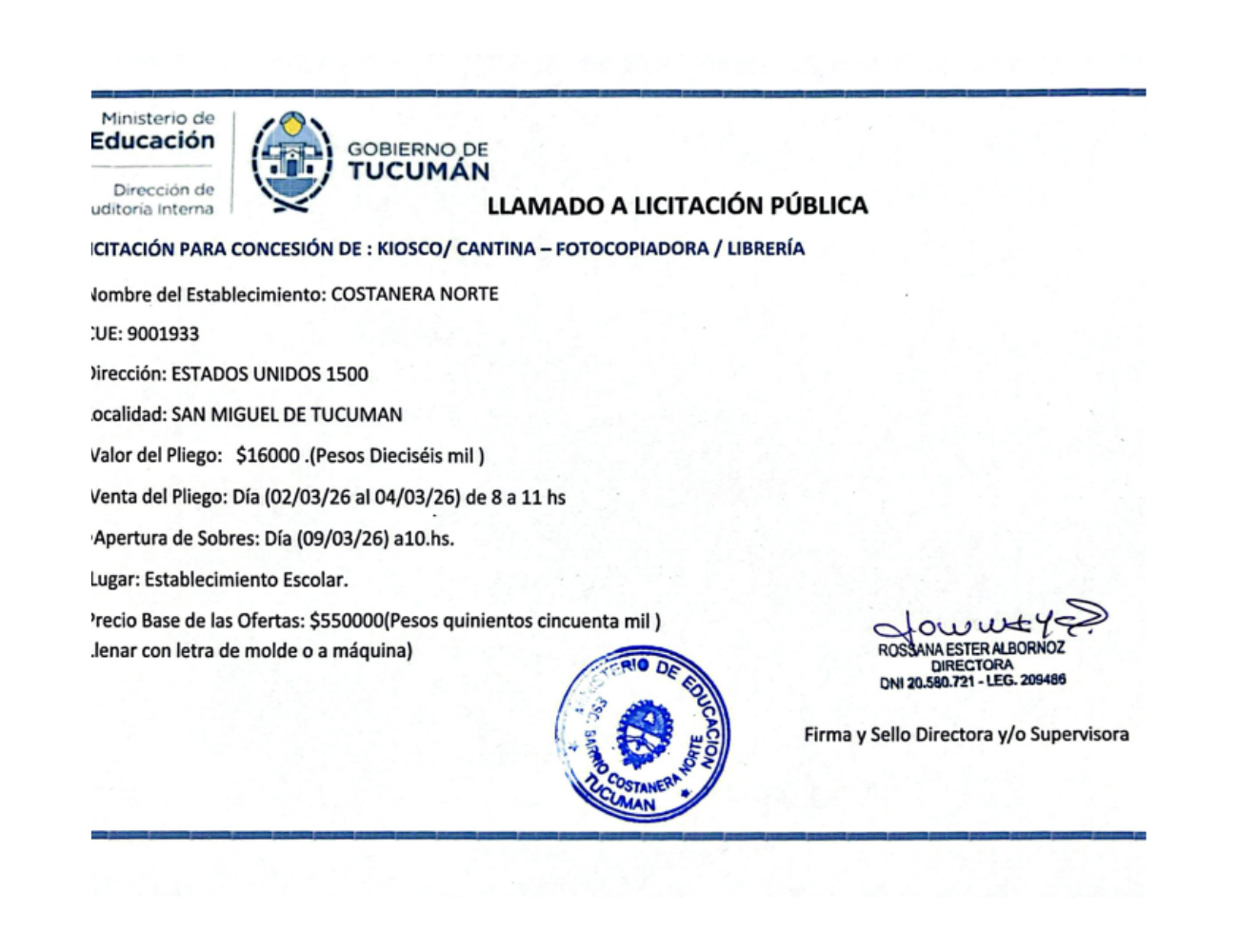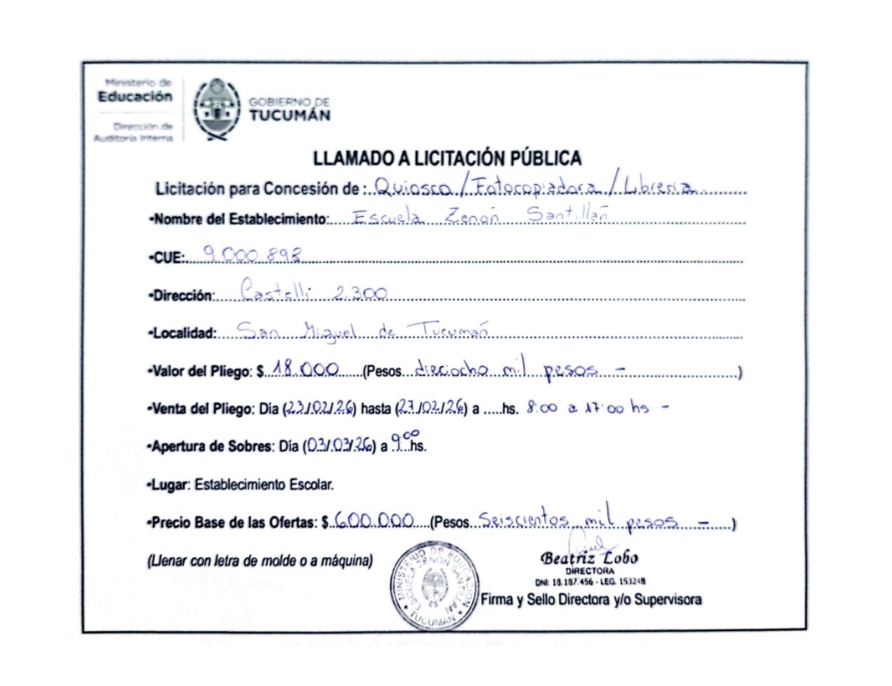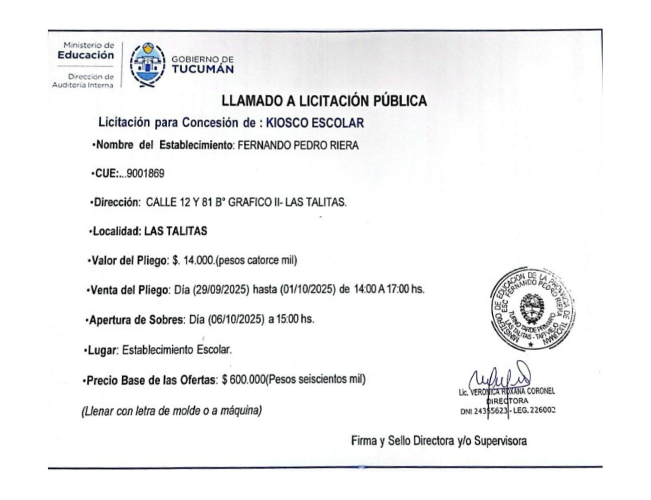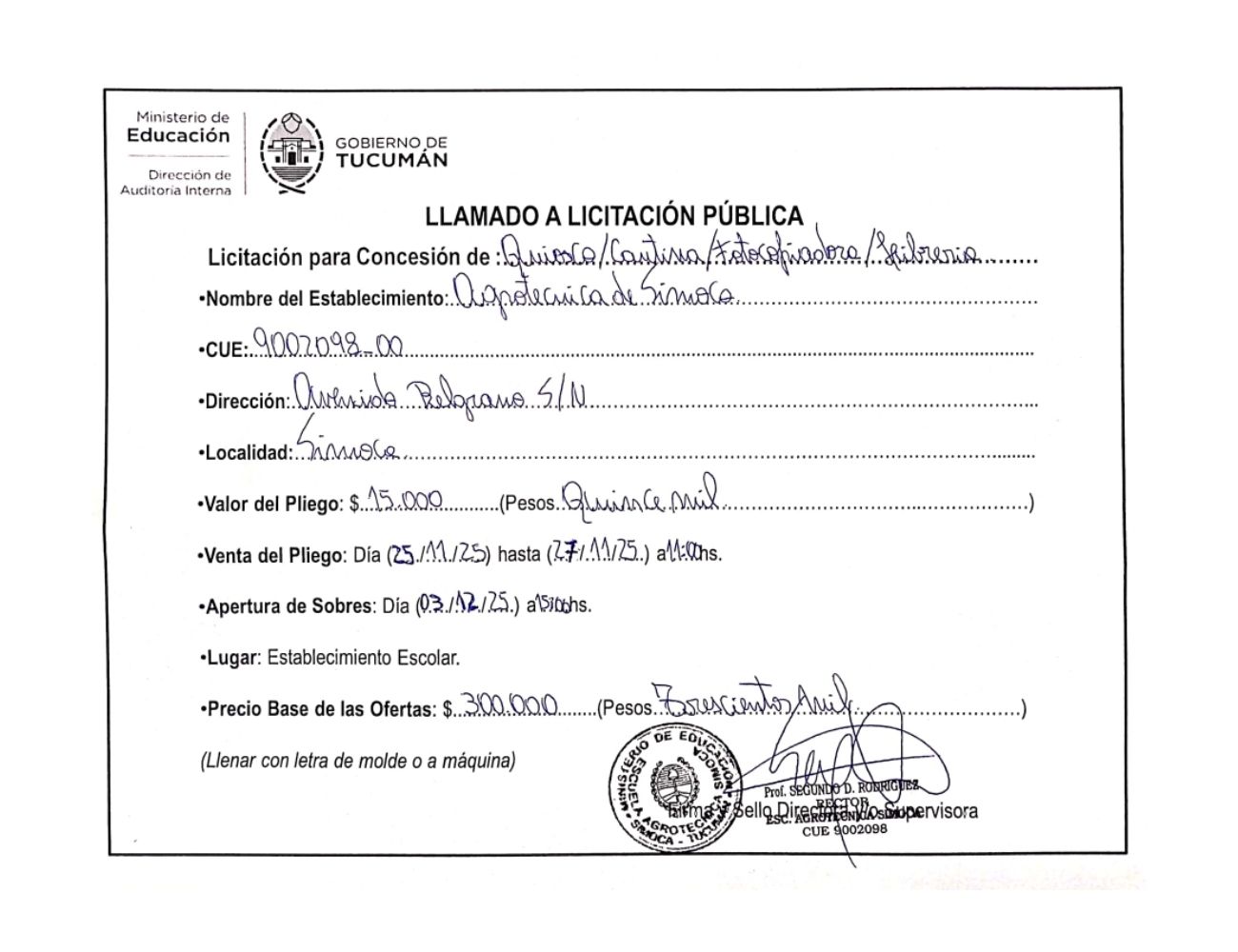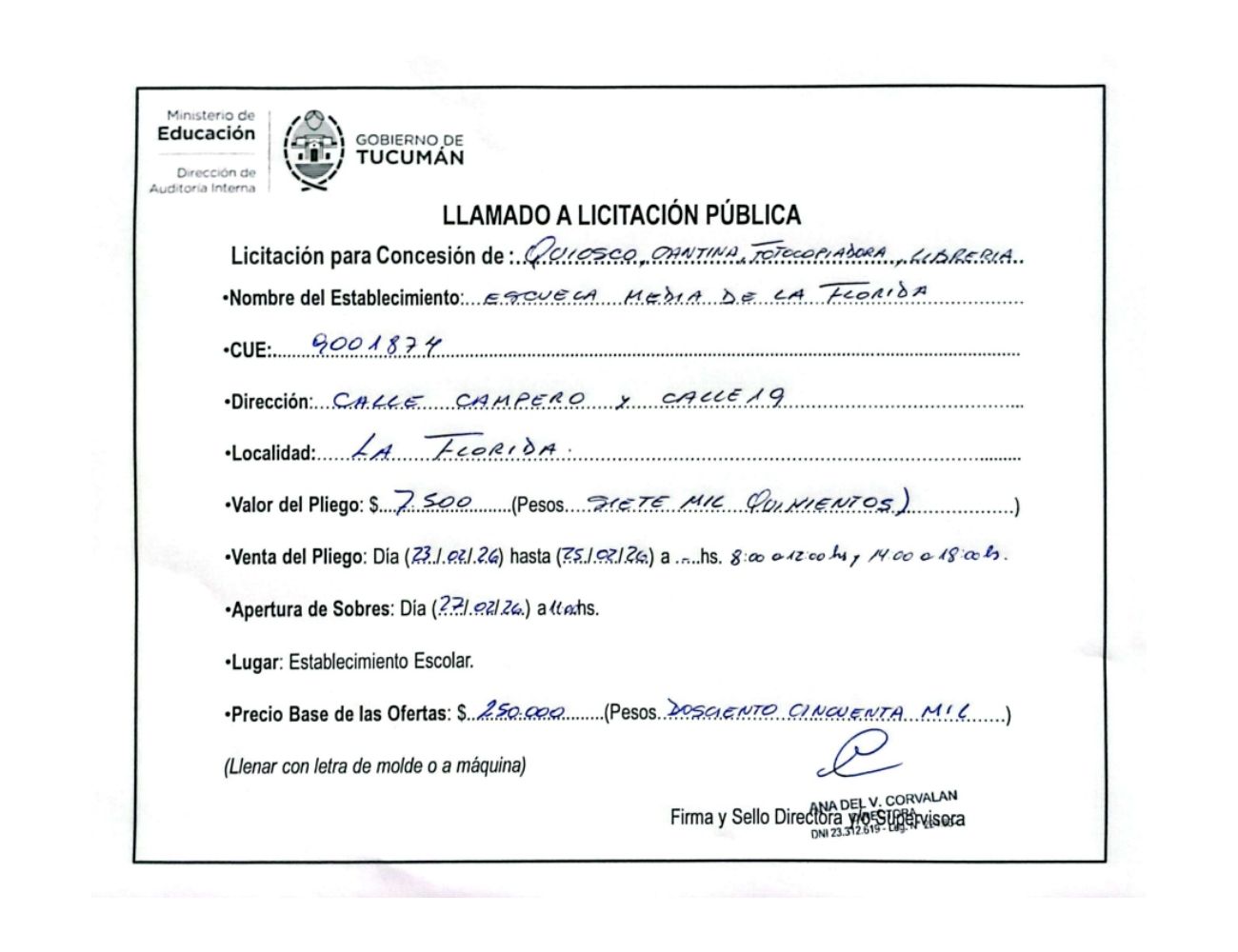 Concesiones Cantina / Quioscos Escolares