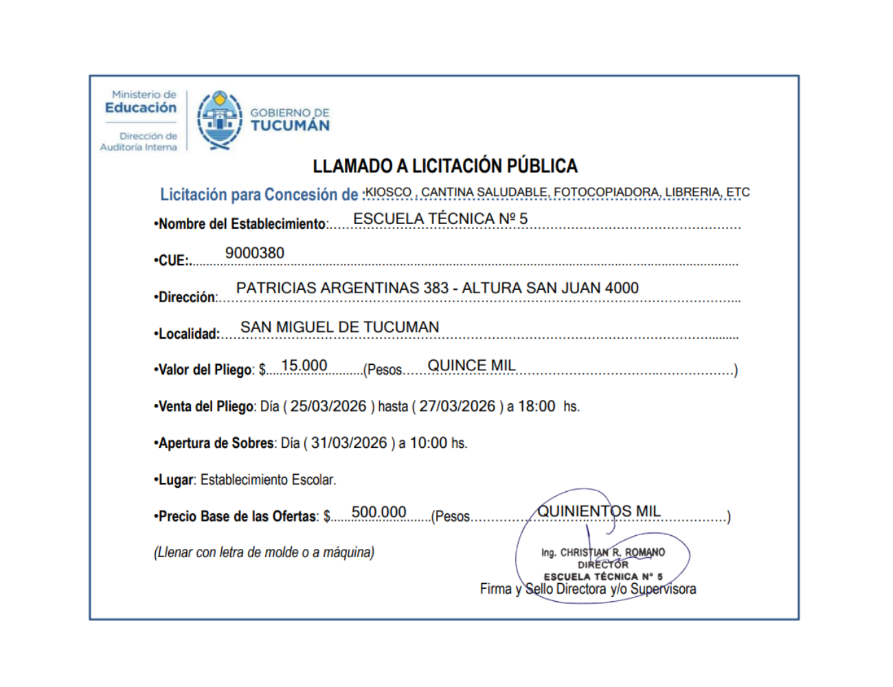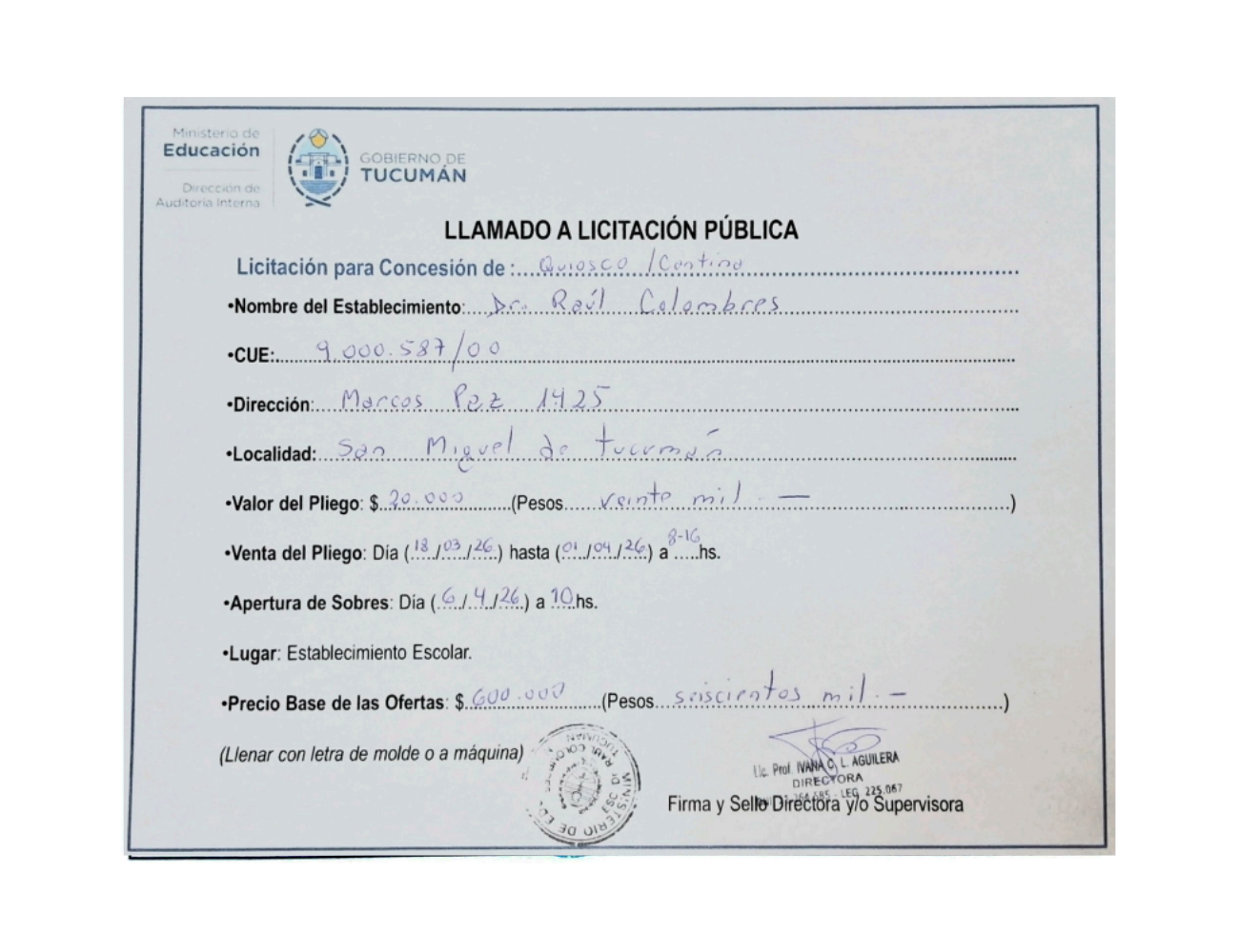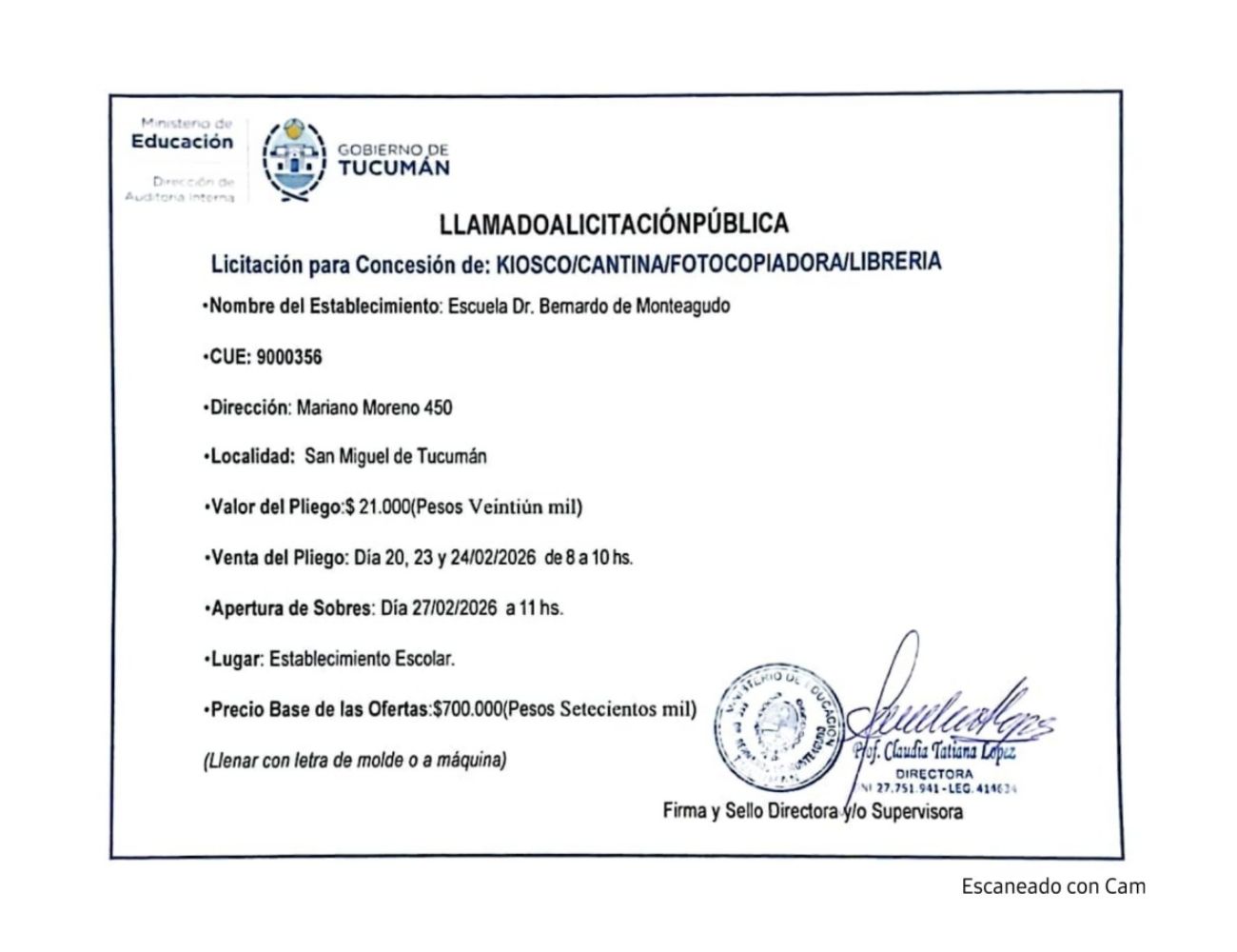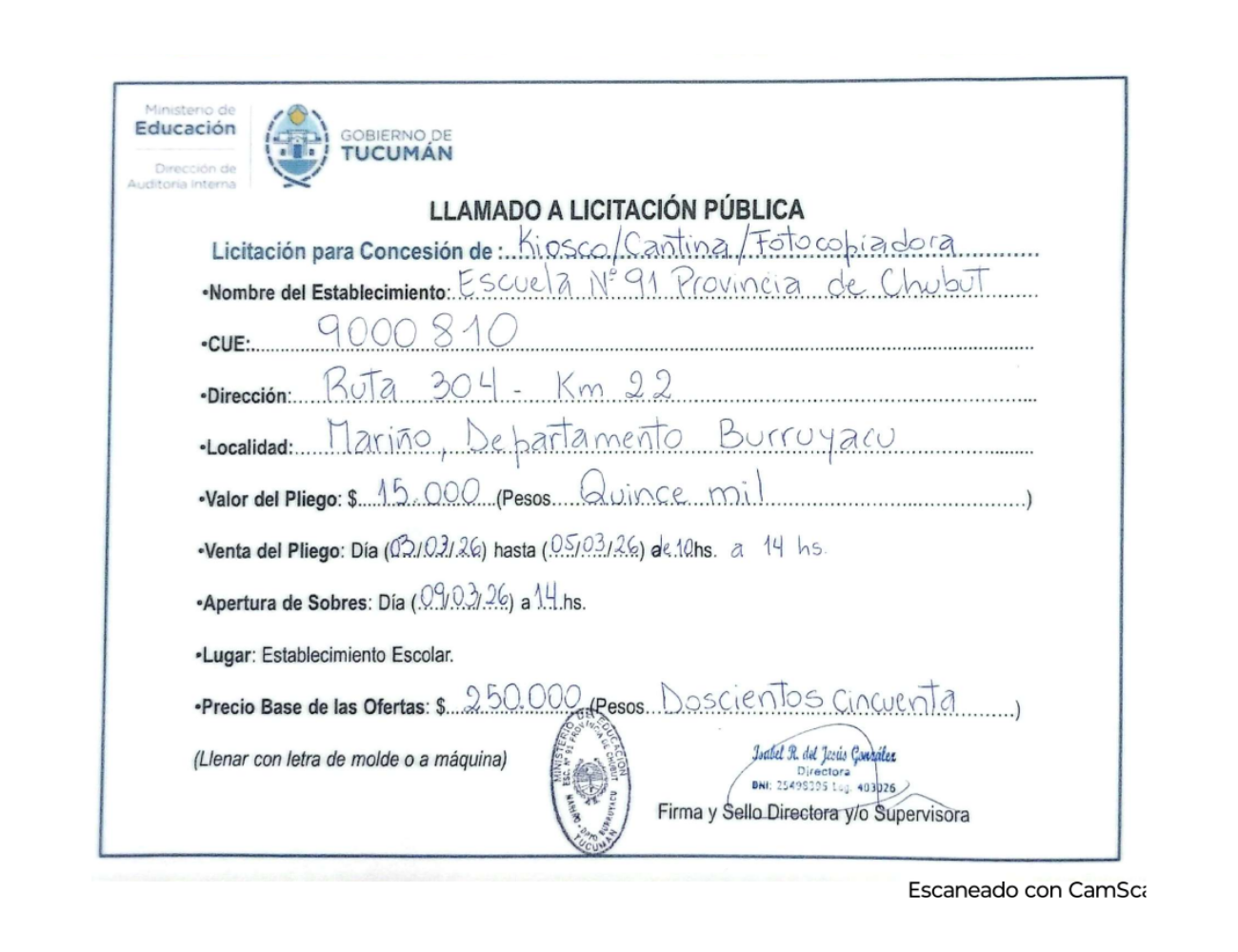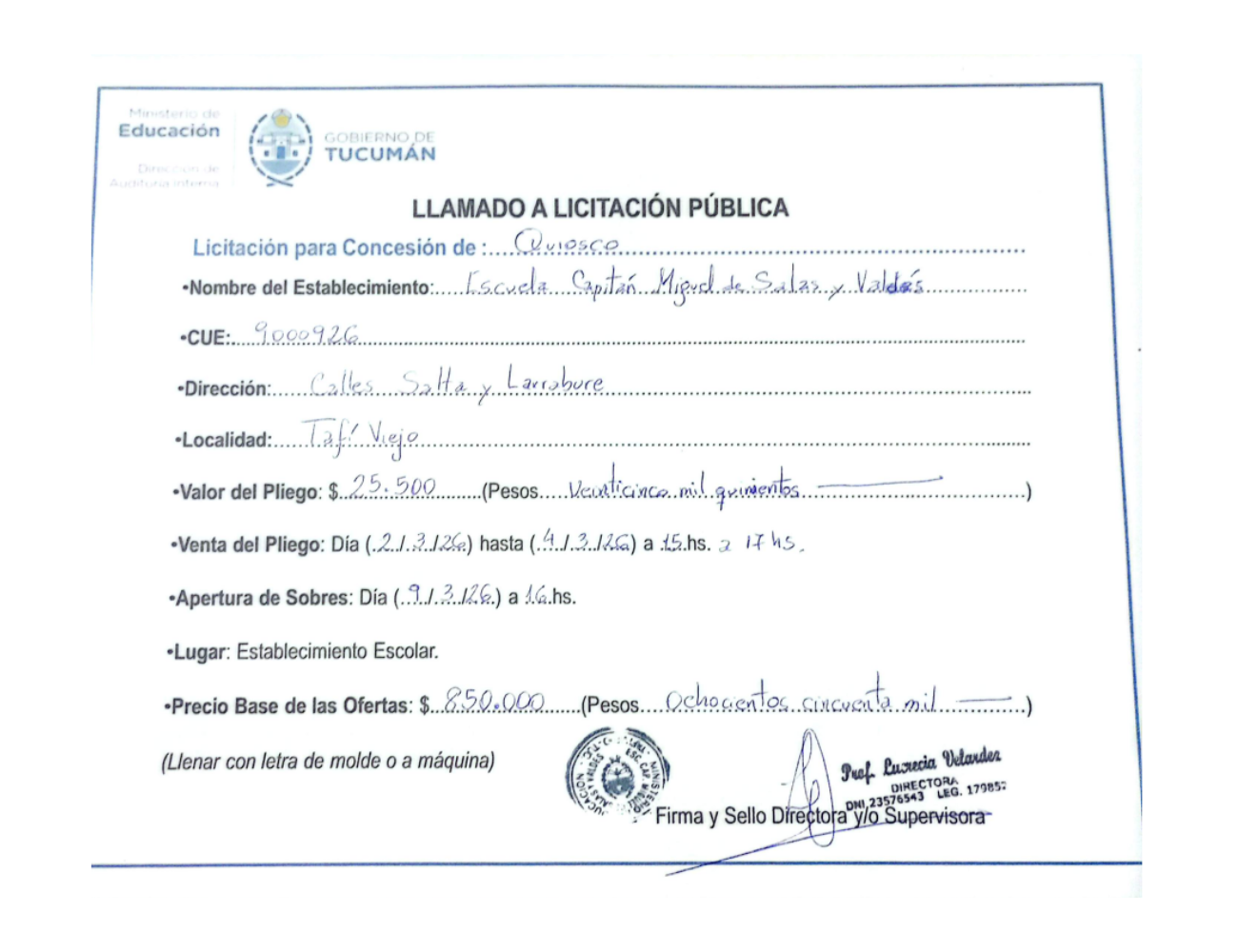 Concesiones Cantina / Quioscos Escolares