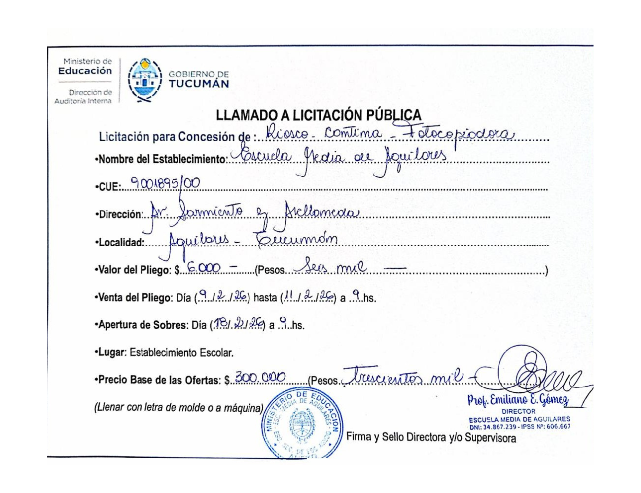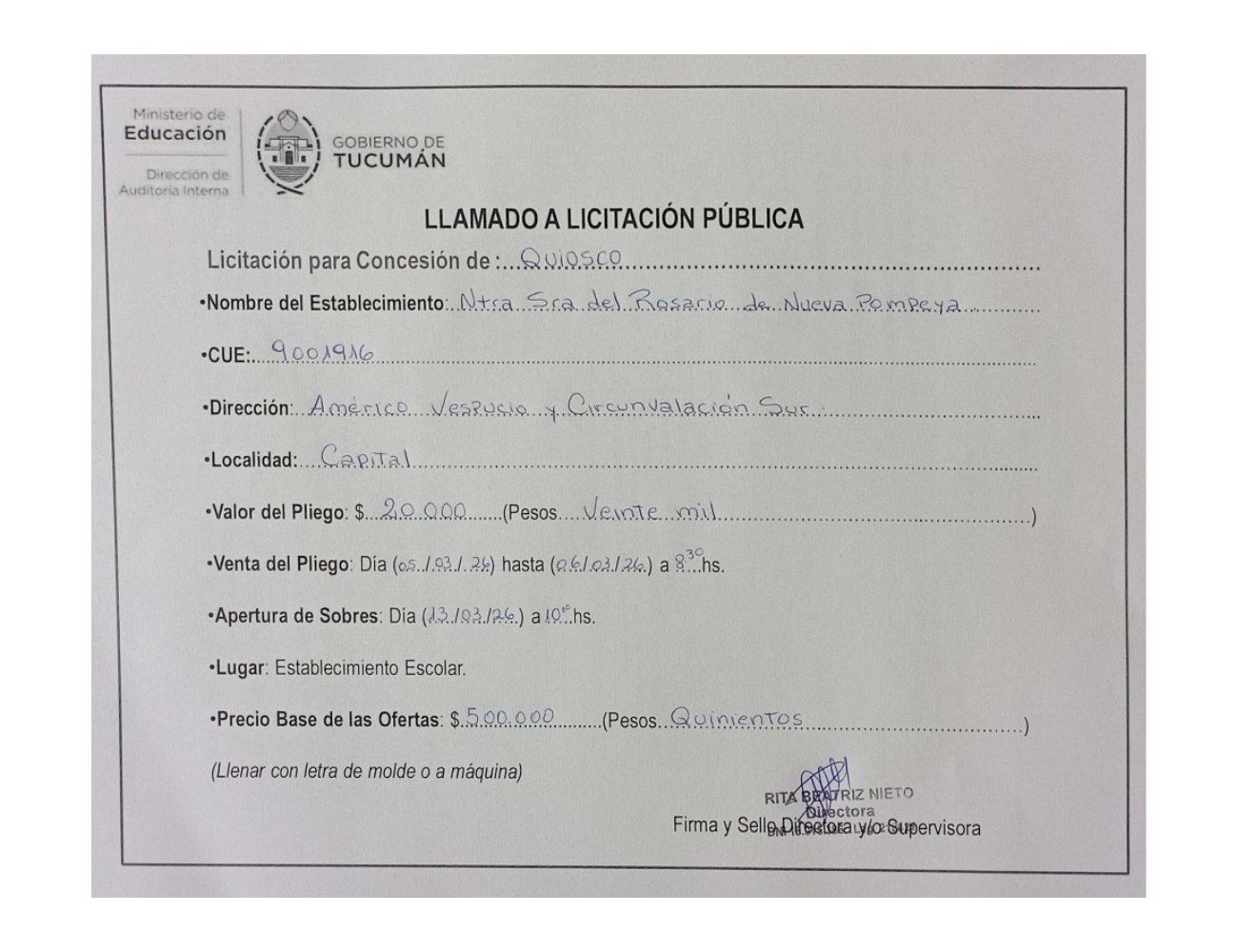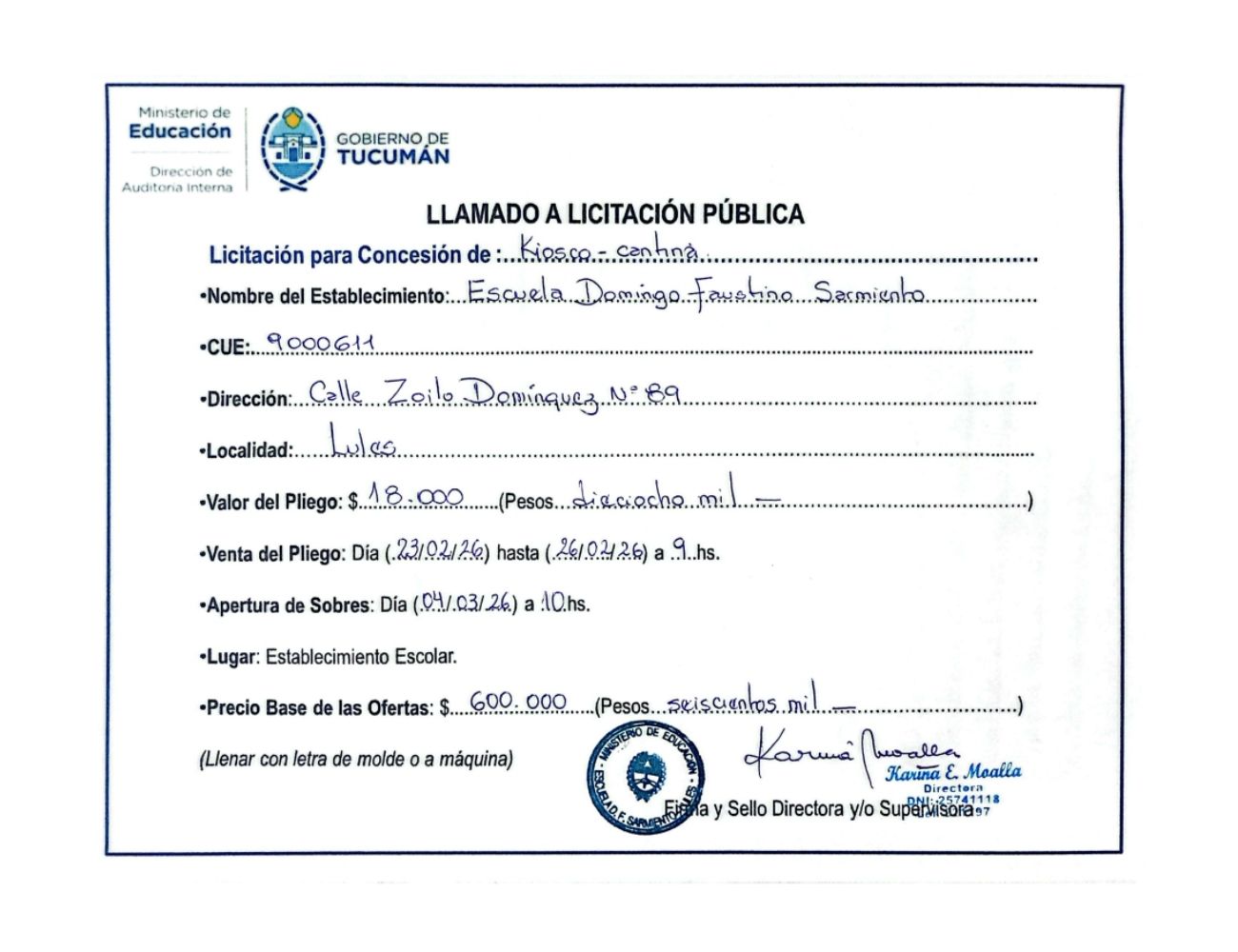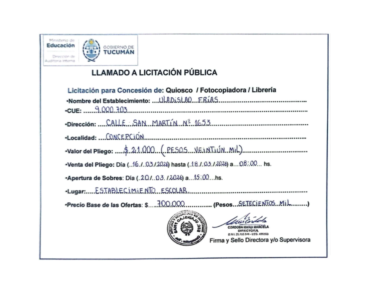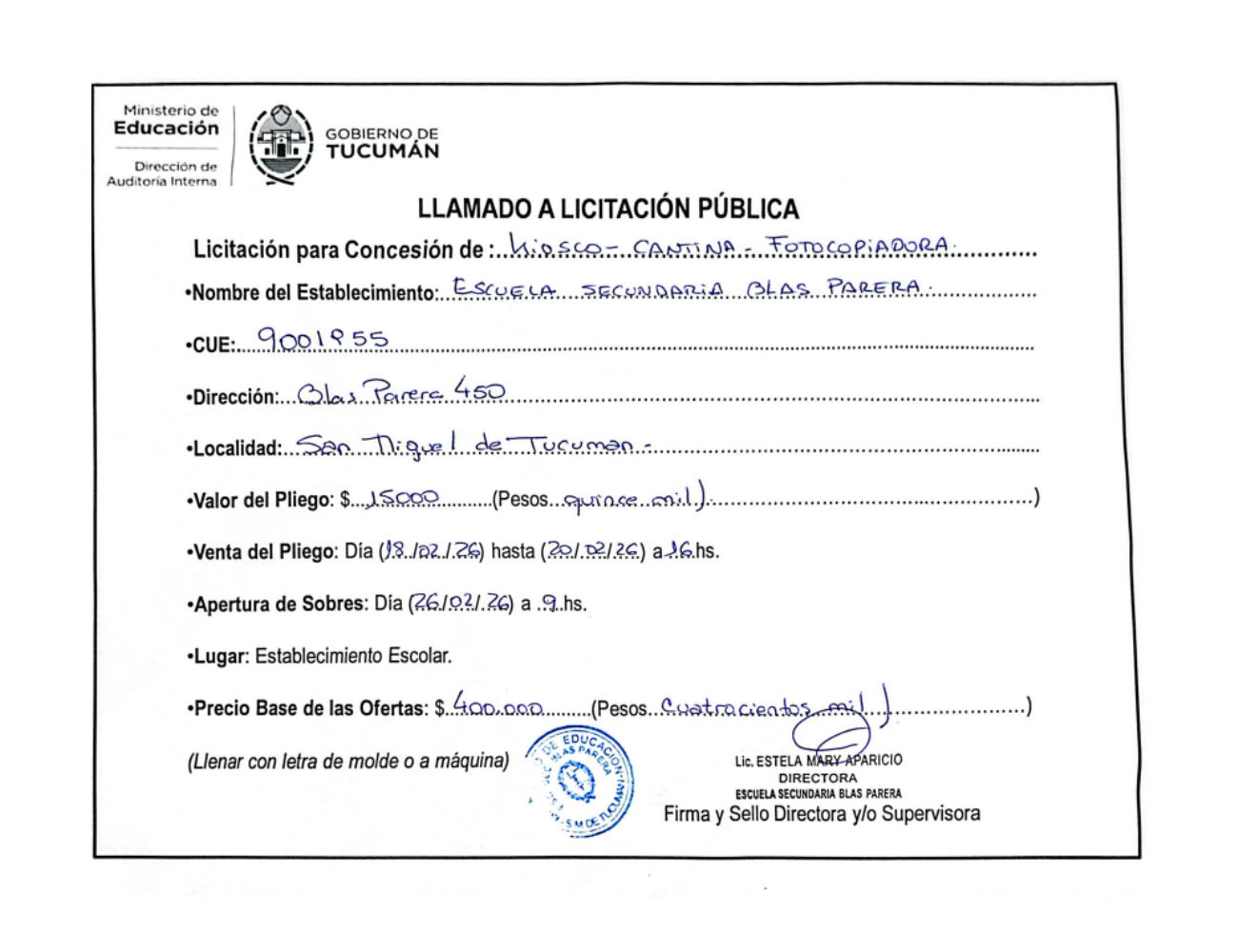 Concesiones Cantina / Quioscos Escolares