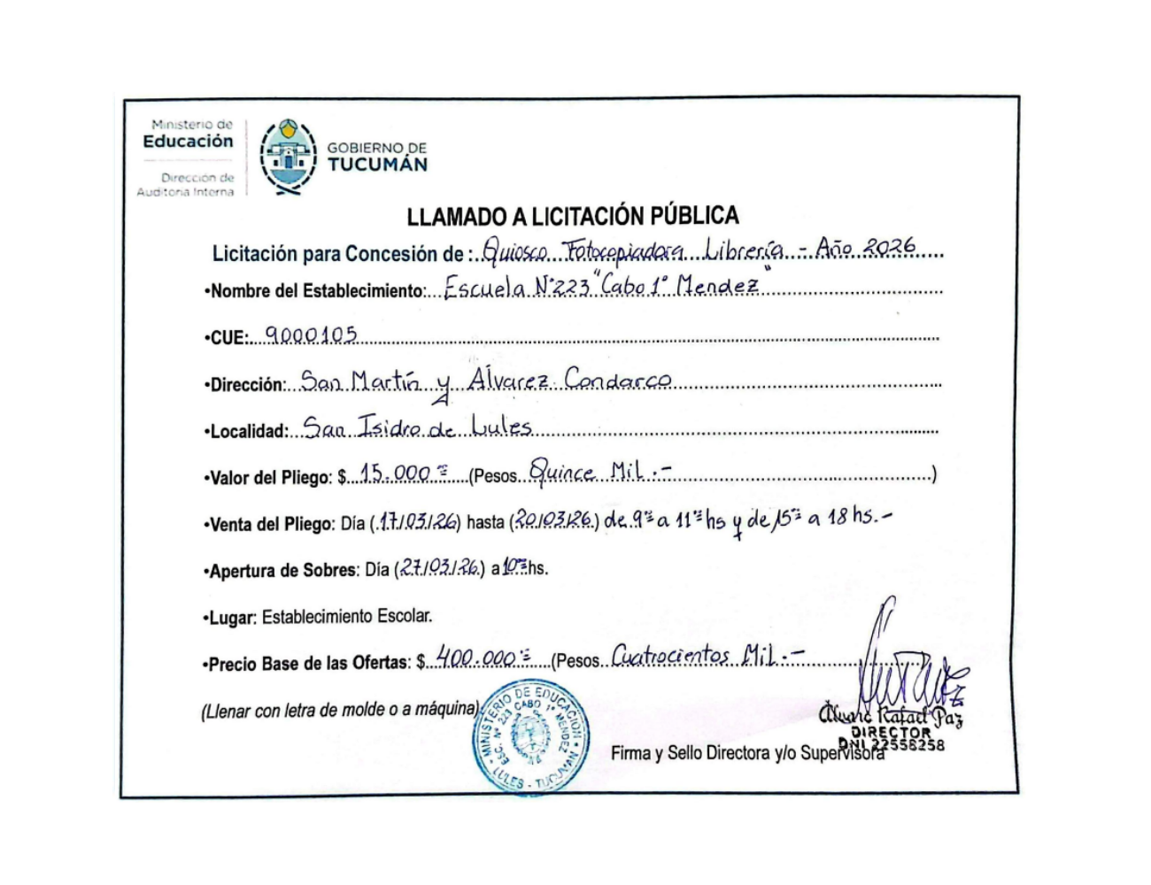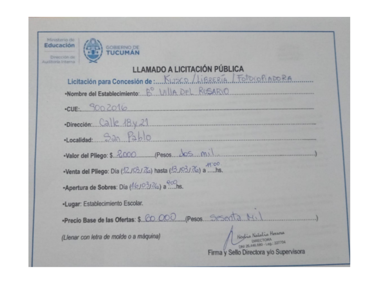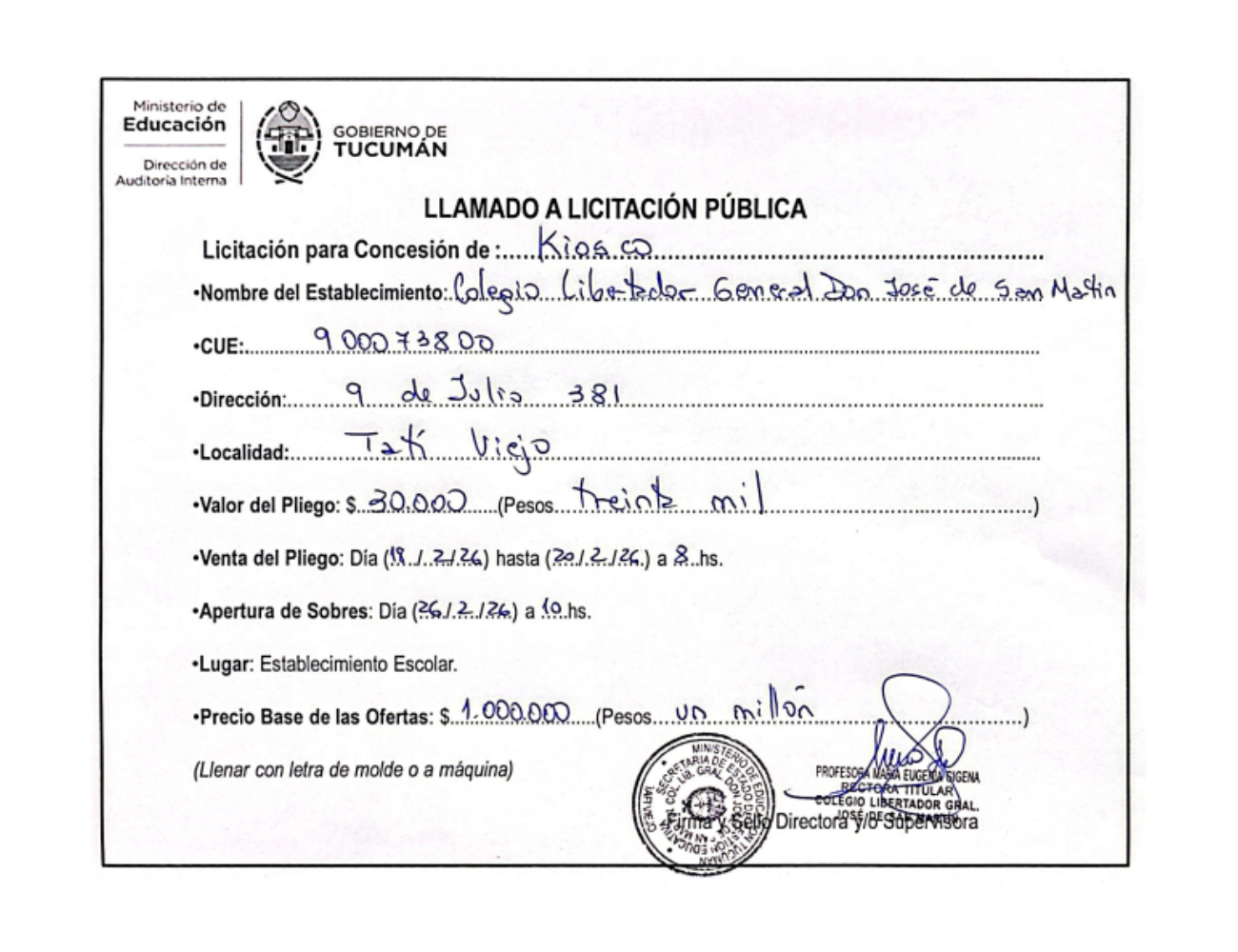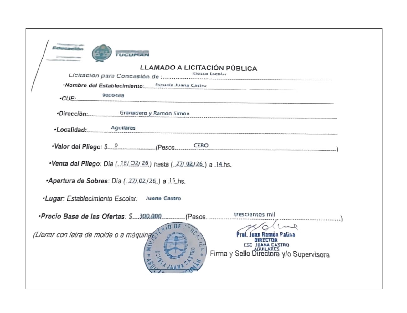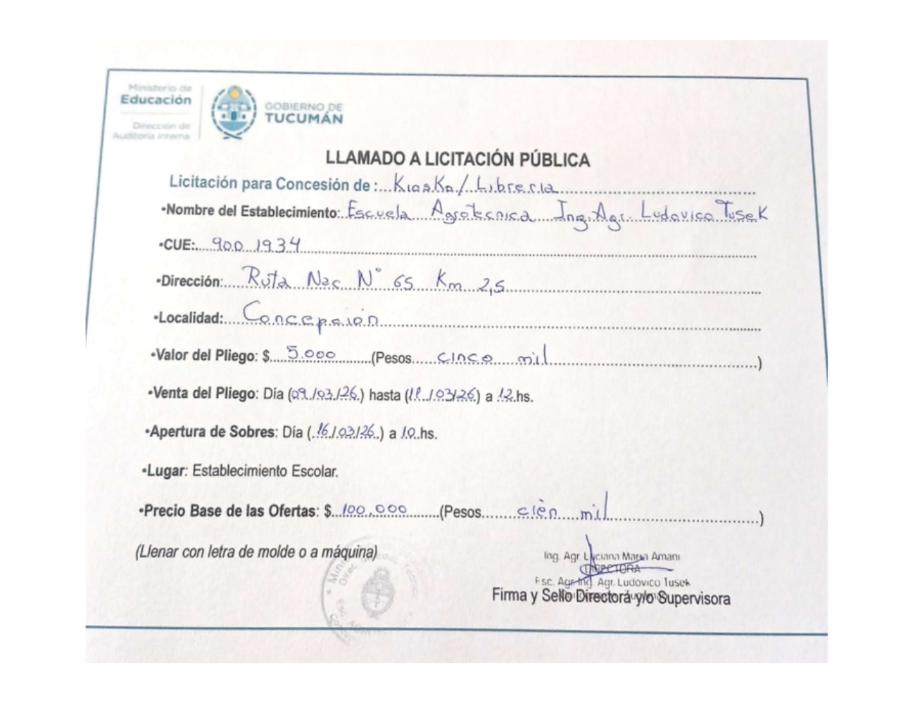 Concesiones Cantina / Quioscos Escolares