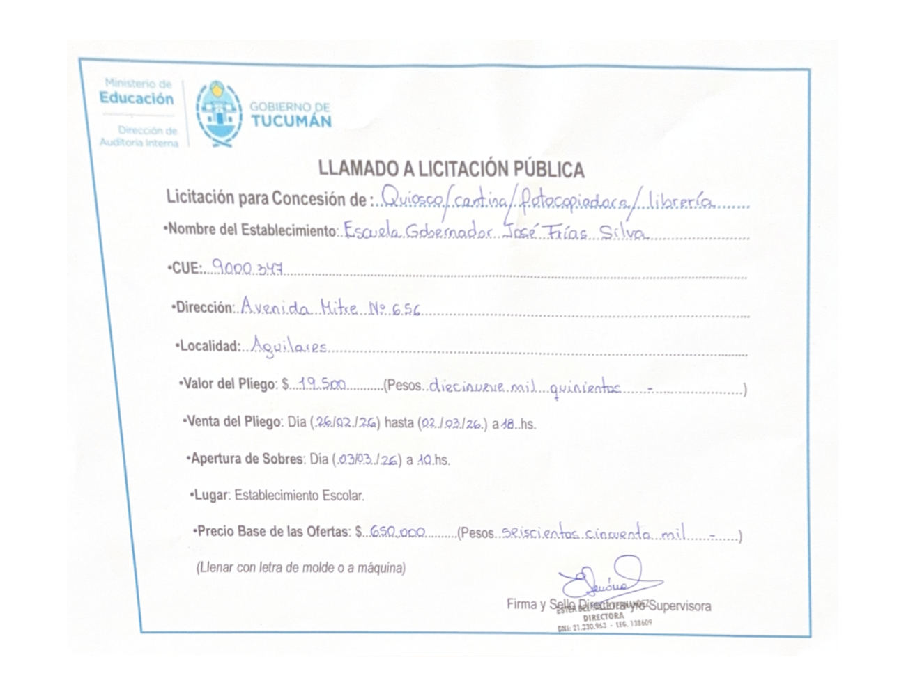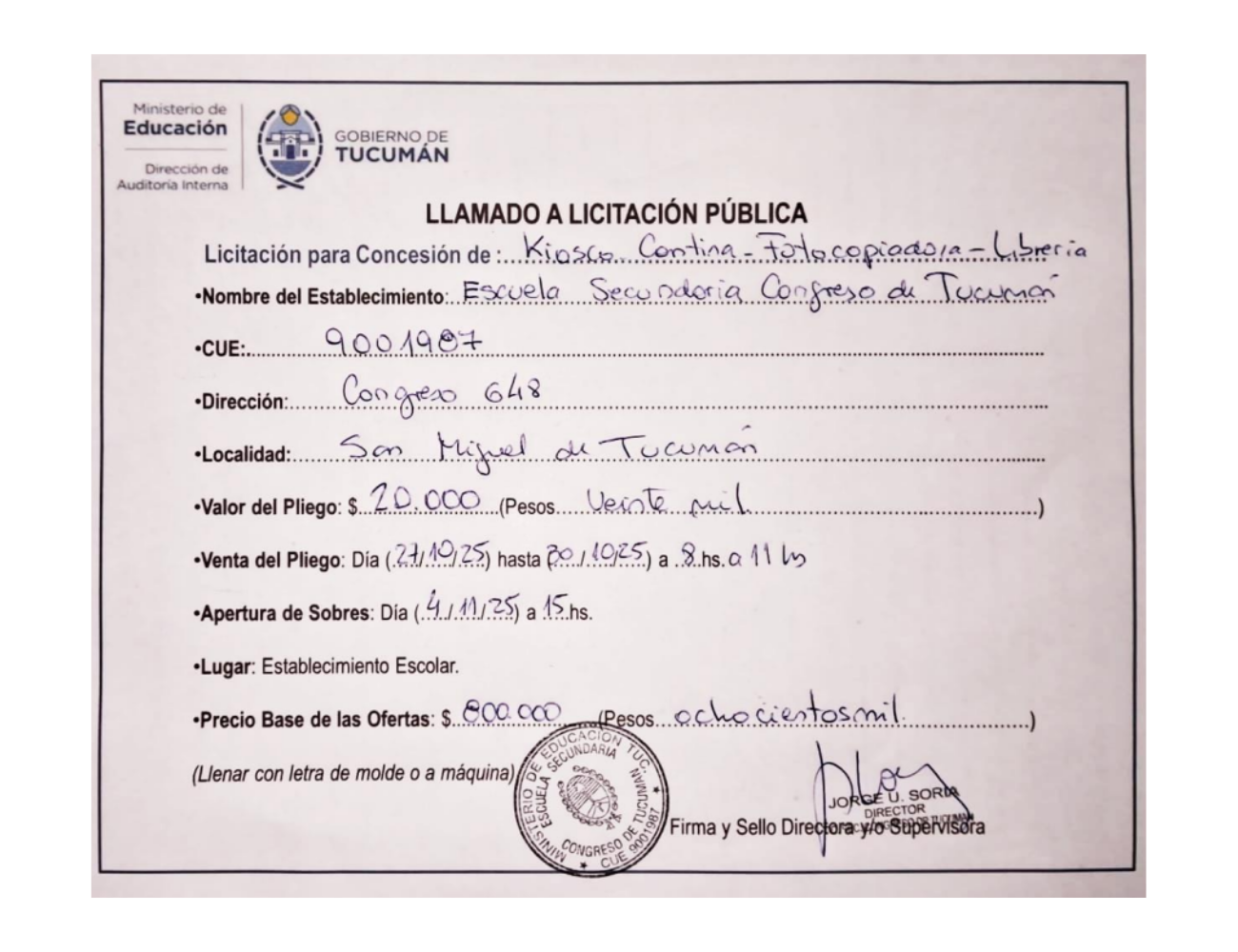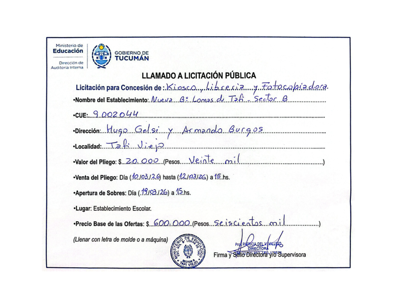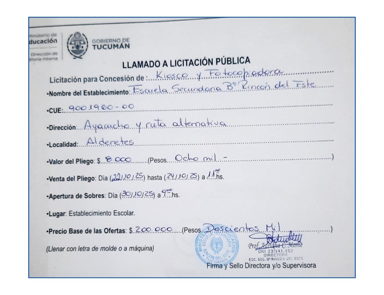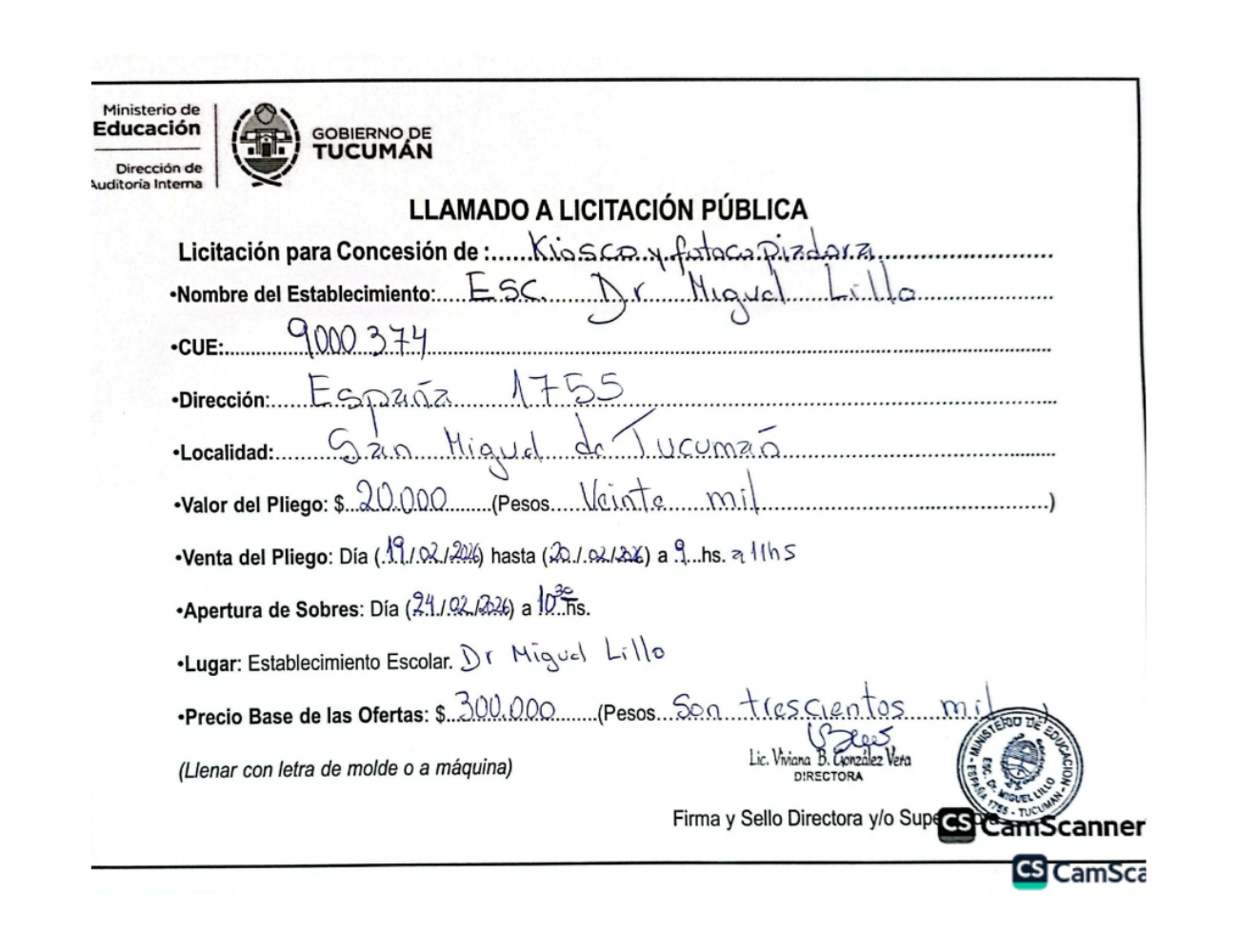 Concesiones Cantina / Quioscos Escolares