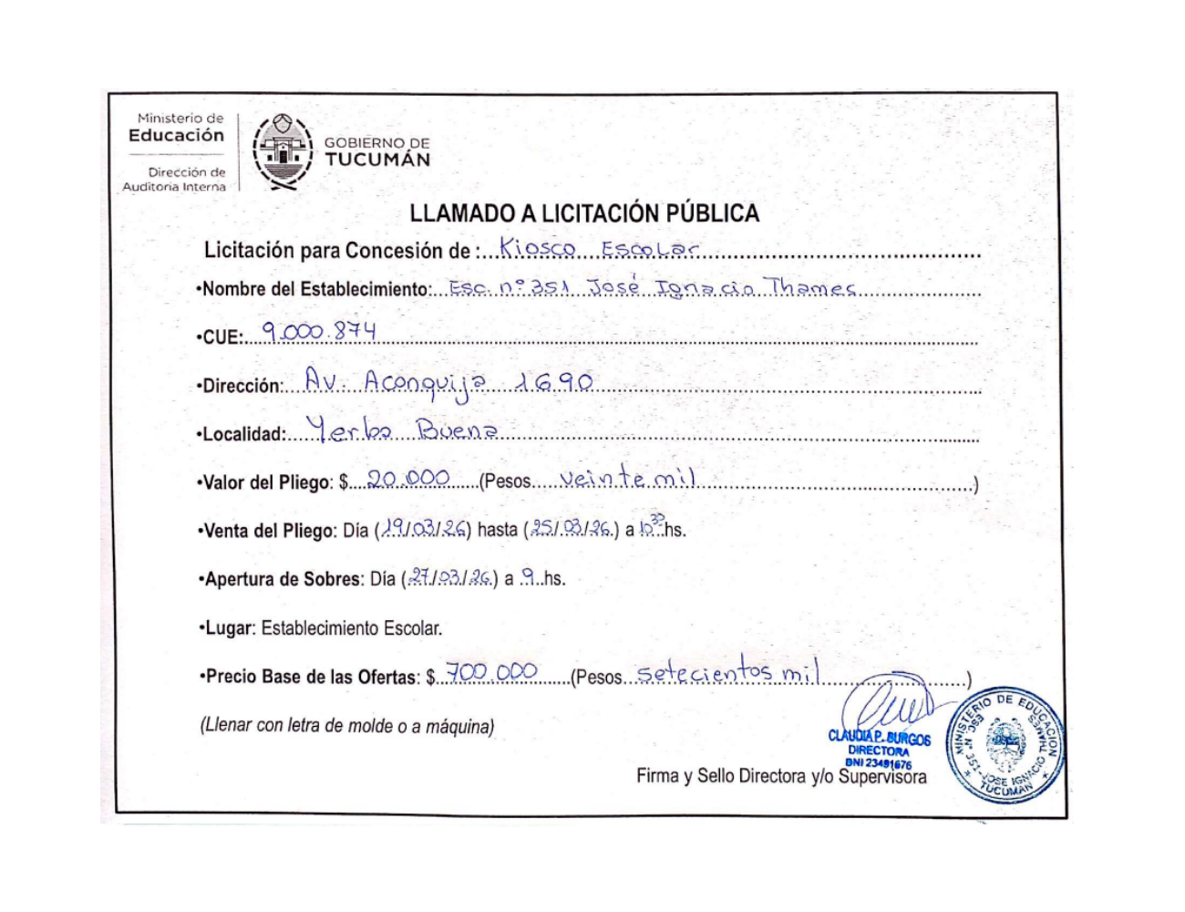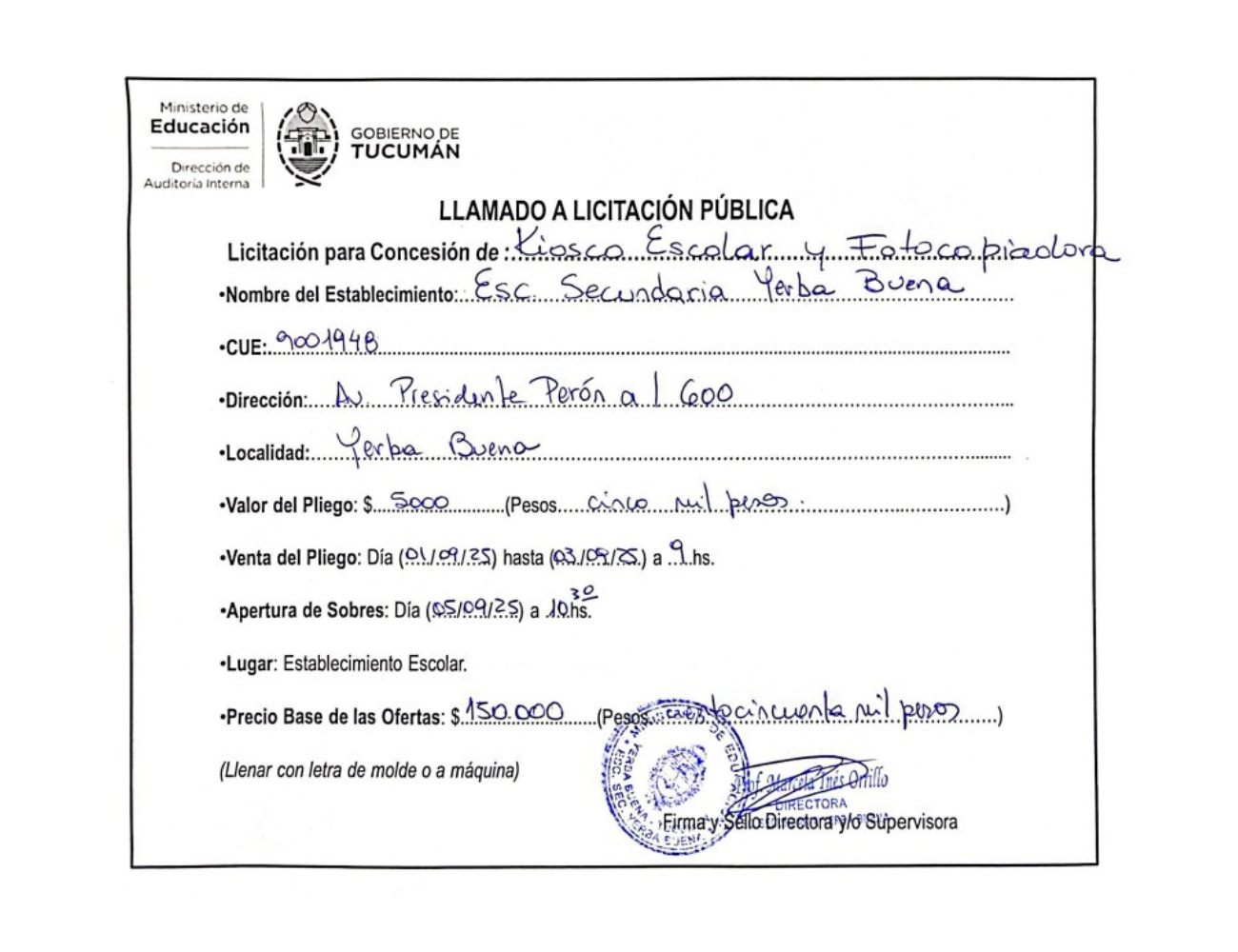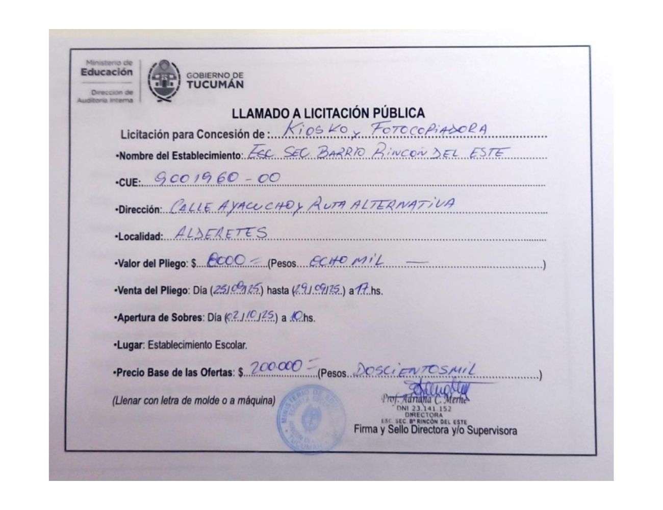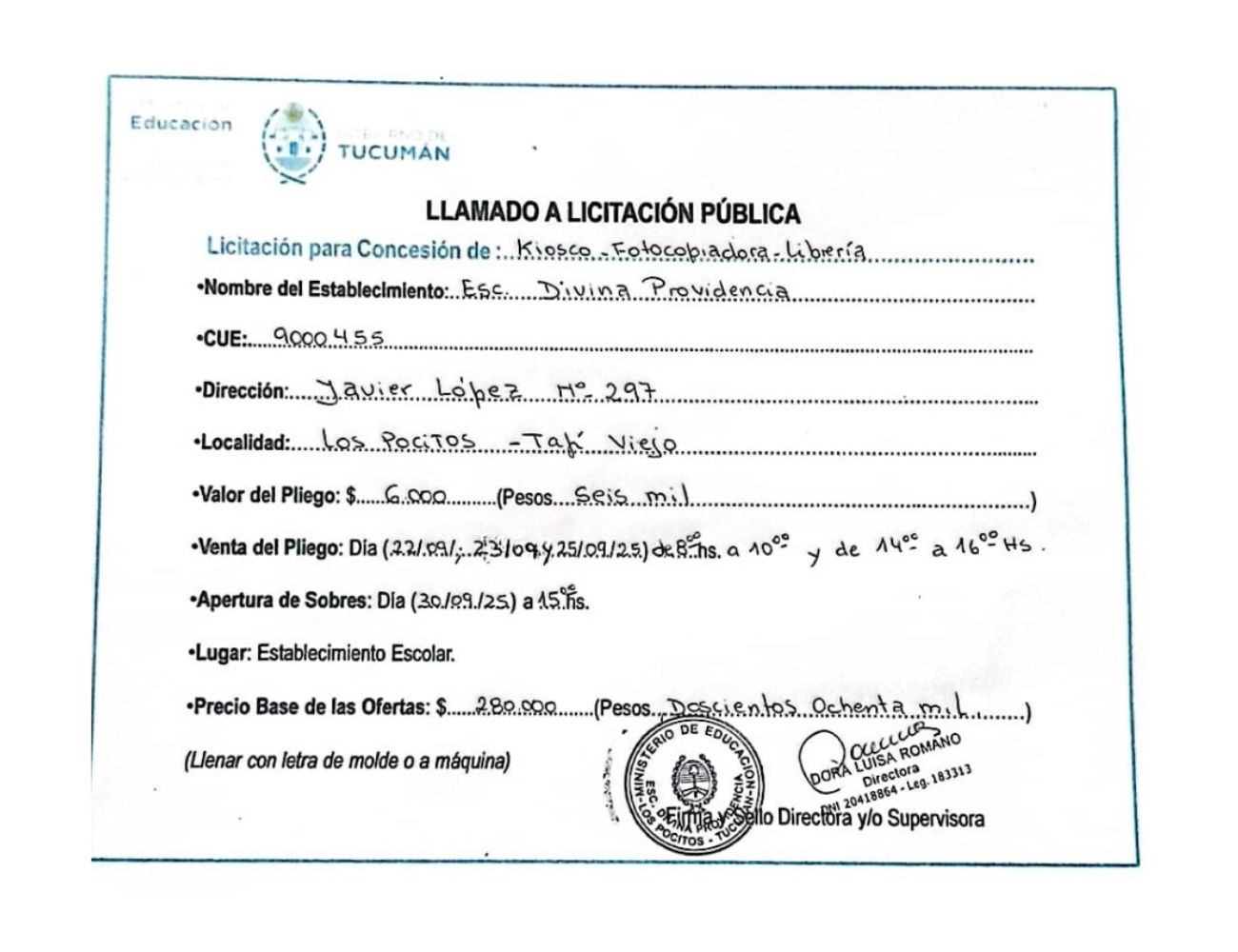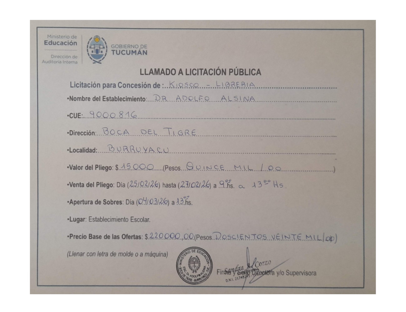 Concesiones Cantina / Quioscos Escolares